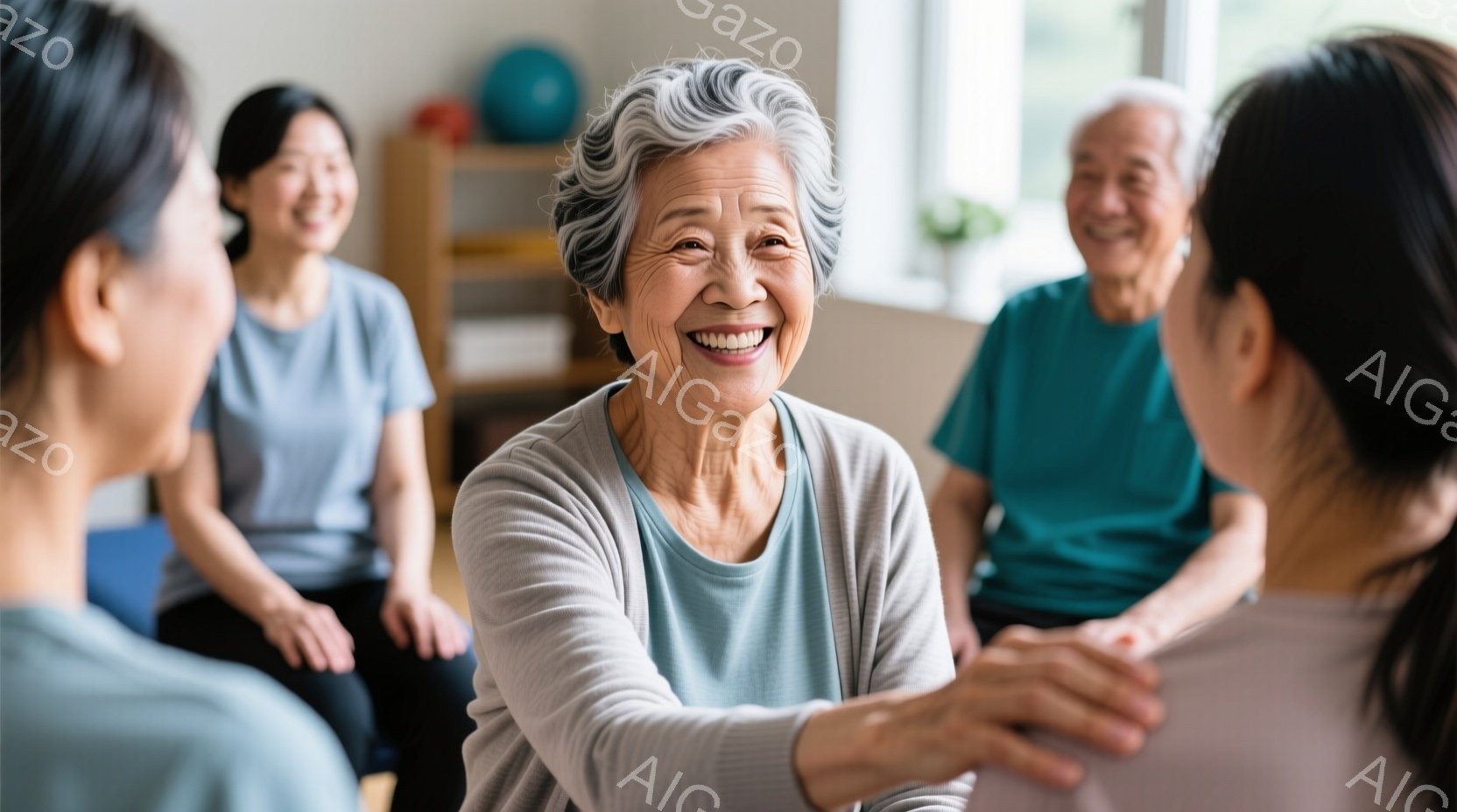 この無料AI生成画像「椅子に座って笑顔を見せる高齢女性が写っています。彼女は薄いグレーの髪で、ベージュのカーディガンと水色のトップスを着ています。背景には他の人々が座っており、室内で穏やかな雰囲気です。」は、2025年10月26日に作成されました。 サイズは 1664×928px の高解像度で、商用利用も可能なフリー素材として提供しています。