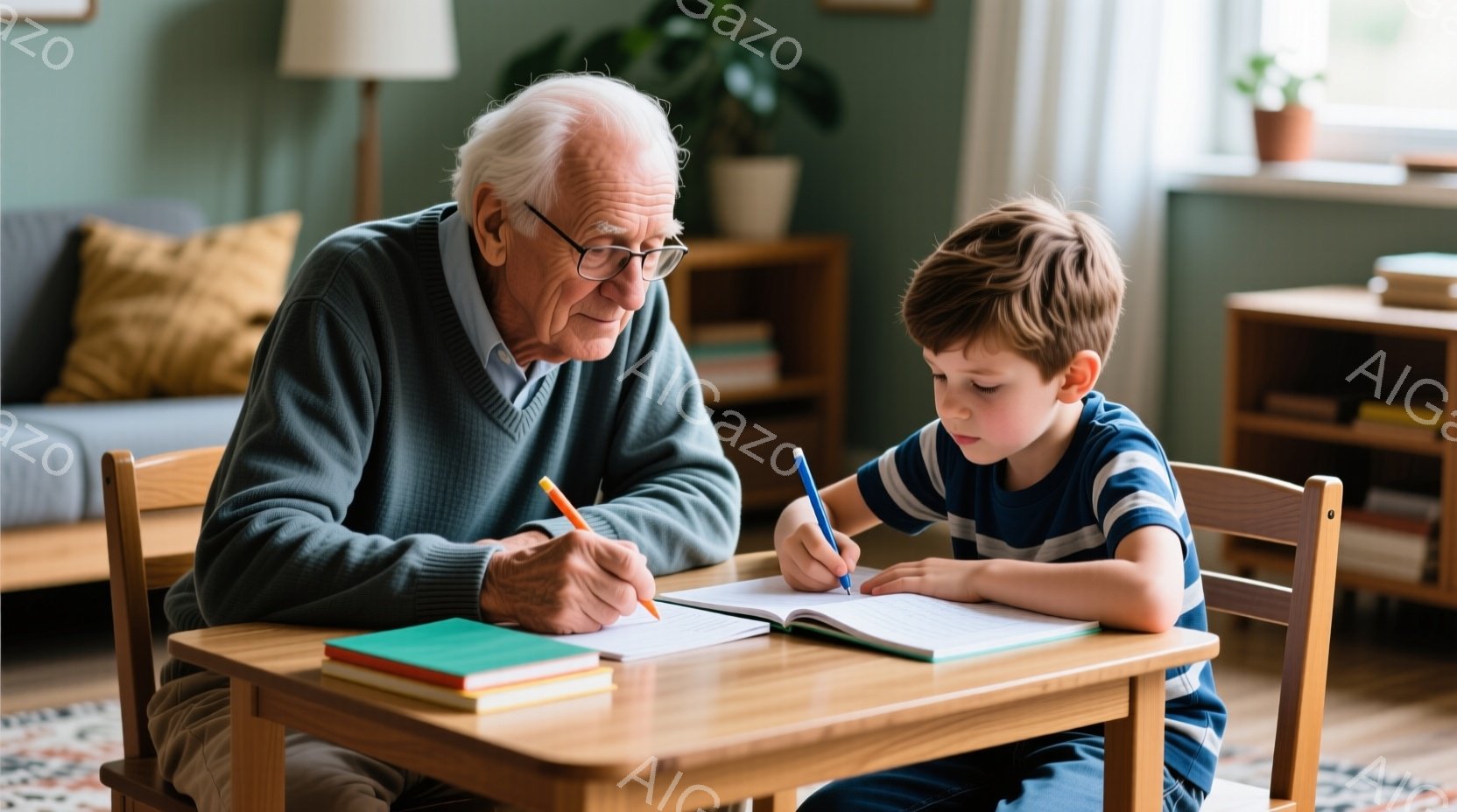 この無料AI生成画像「少年はテーブルで漢字の練習をしており、母親が温かく見守っています。少年はグレーのセーターを着ており、母親はベージュ色のニットを着ています。背景には本棚が見え、室内は明るく家庭的な雰囲気が漂っています。」は、2025年10月26日に作成されました。 サイズは 1664×928px の高解像度で、商用利用も可能なフリー素材として提供しています。