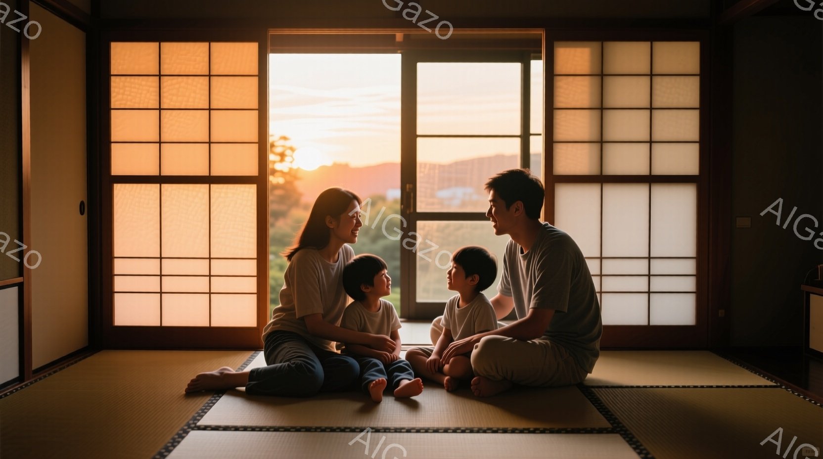 この無料AI生成画像「藍色の花柄の着物を着た女性が、畳の部屋で二人の子供たちと向き合っている。子供たちはそれぞれ異なる柄の着物を着ており、女性に何かを受け取ろうとしている様子が見られる。背景には、障子戸と収納棚があり、和の落ち着いた雰囲気が漂っている。」は、2025年10月26日に作成されました。 サイズは 1664×928px の高解像度で、商用利用も可能なフリー素材として提供しています。