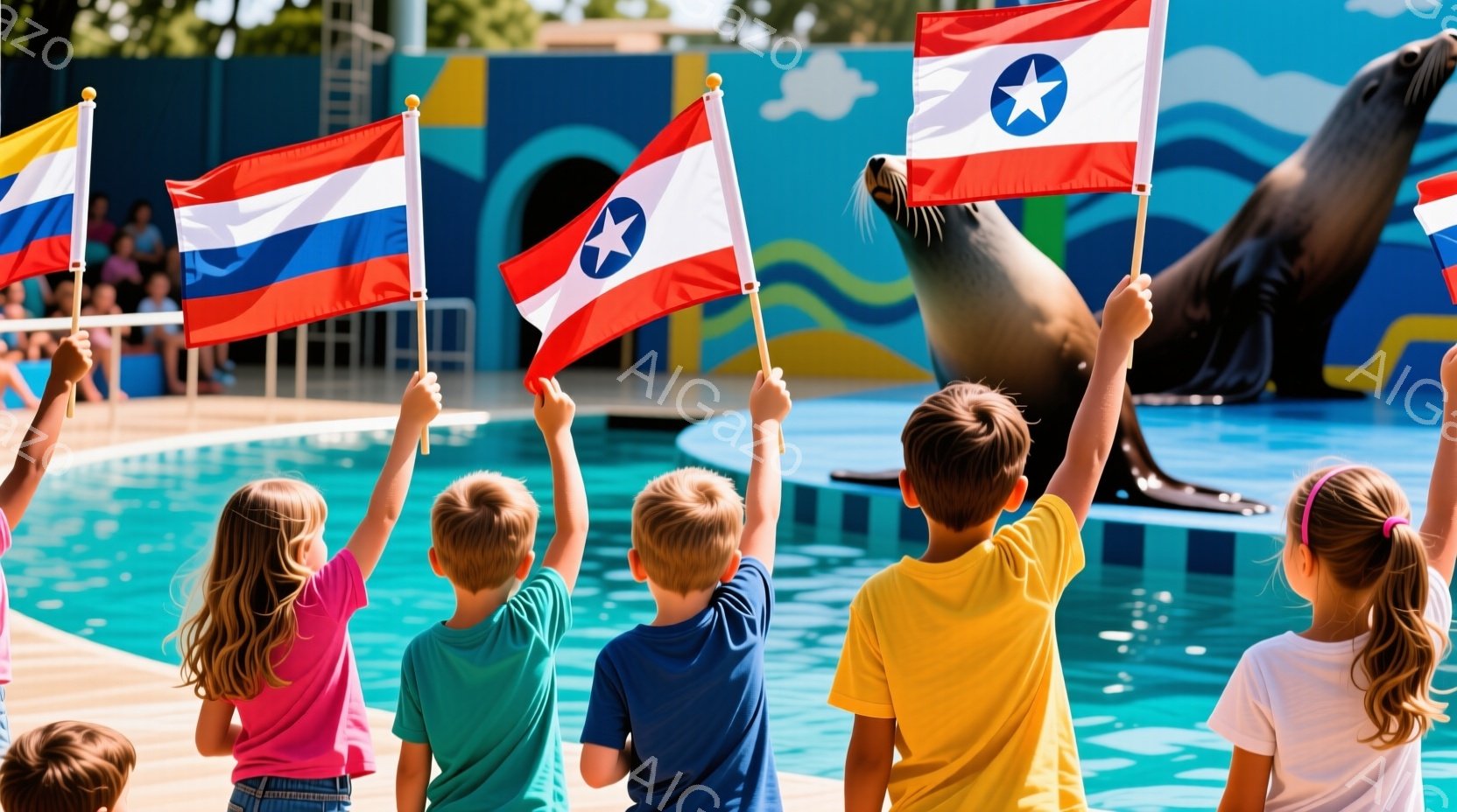 この無料AI生成画像「青い水槽の中で、大きなシャチが大きくジャンプしており、水しぶきが飛び散っています。観客席には様々な服装の観客がおり、手を挙げてシャチのパフォーマンスを楽しんでいる様子が伺えます。晴れた日の屋外プールのような背景で、明るく活気のある雰囲気が漂っています。」は、2025年10月26日に作成されました。 サイズは 1664×928px の高解像度で、商用利用も可能なフリー素材として提供しています。