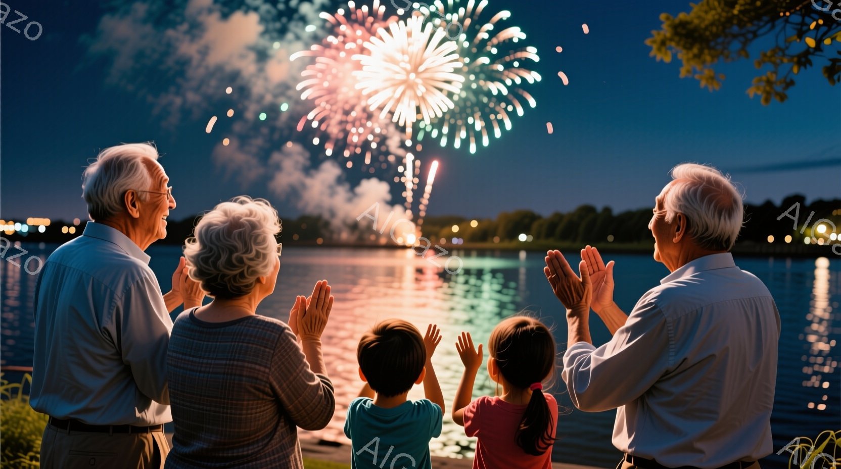 この無料AI生成画像「芝生の広場にレジャーシートを広げ、幼い子供たちが花火を見上げています。一番手前の女の子は水色のTシャツを着ており、後ろの男の子は黄色のTシャツを着ています。背景にはたくさんの観客、白いテント、そして夜空に咲く壮大な花火が広がっており、祭りの温かく幻想的な雰囲気を醸し出しています。」は、2025年10月26日に作成されました。 サイズは 1664×928px の高解像度で、商用利用も可能なフリー素材として提供しています。