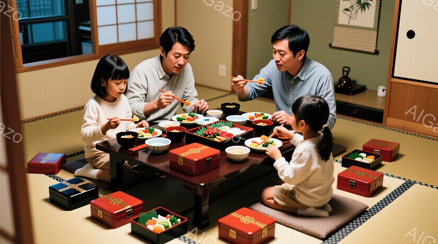 この無料AI生成画像「晴れた空の下、家族四人が広い公園で凧揚げを楽しんでいる様子が描かれています。母親はベージュのジャケットに赤いインナー、父親はグレーのセーターを着て、それぞれ子供たちと手をつないで凧を高く上げています。背景には緑の芝生と木々、そして中国風の赤い提灯が飾られており、明るく幸せな雰囲気が漂っています。」は、2025年10月26日に作成されました。 サイズは 1664×928px の高解像度で、商用利用も可能なフリー素材として提供しています。