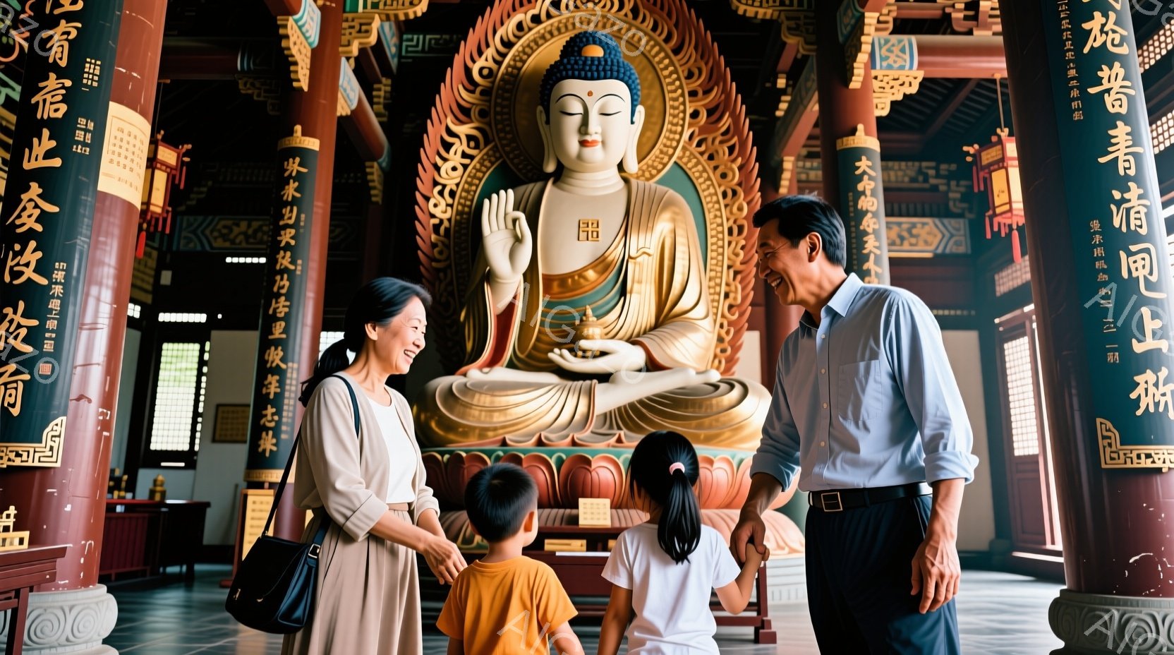 この無料AI生成画像「一組の家族が寺院の敷地内を歩いている。母親はベージュ色のジャケット、父親は濃い青色のジャケットを着ており、幼い娘は母親と手を繋いでいる。背景には、鮮やかな赤色の紅葉と、伝統的な様式の寺院が見え、秋の穏やかな日差しが降り注いでおり、温かい雰囲気が漂っている。」は、2025年10月26日に作成されました。 サイズは 1664×928px の高解像度で、商用利用も可能なフリー素材として提供しています。