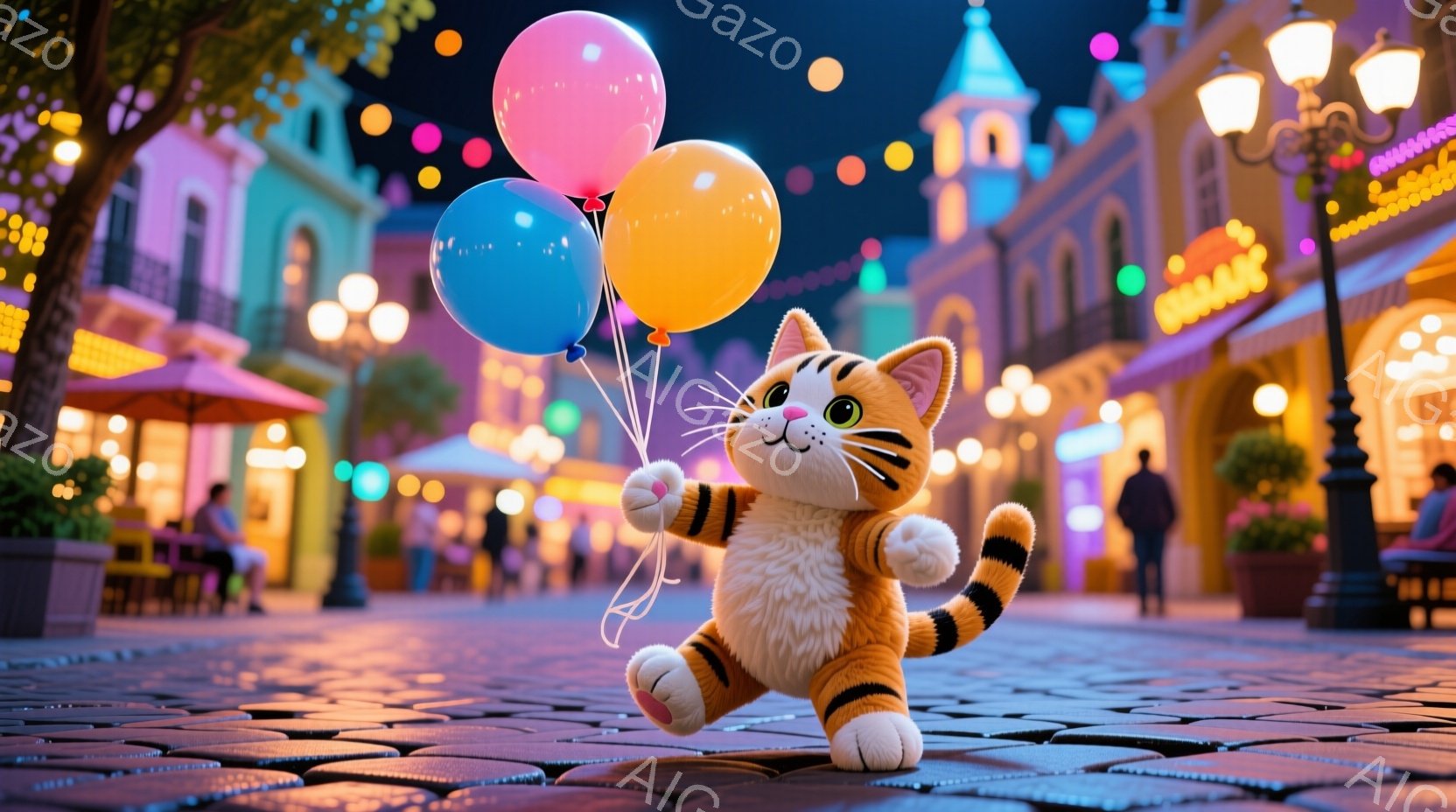 この無料AI生成画像「カラフルなキャンディが並んだ屋台の前に、大きな茶色のテディベアが座っています。テディベアは赤いリボンを首に巻き、片手にポップコーンの入った赤いストライプの箱を持っています。背景には、さまざまな色のキャンディや照明が設置されており、お祭りや遊園地の楽しい雰囲気を醸し出しています。」は、2025年10月26日に作成されました。 サイズは 1664×928px の高解像度で、商用利用も可能なフリー素材として提供しています。