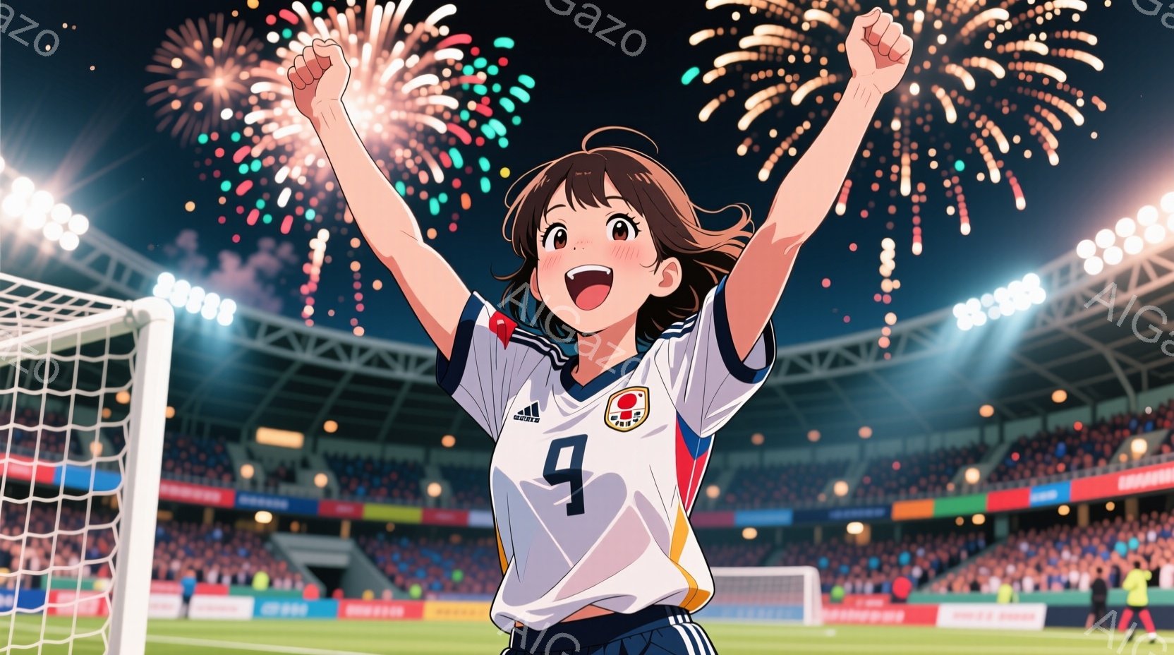 この無料AI生成画像「少女は緑の芝生の上でサッカーボールをドリブルしている。白い襟付きのシャツと紺色の短パン、白いソックスに黒いスパイクを履いており、長い髪をポニーテールにしている。背景にはサッカーゴールと木々が見え、晴れた日の屋外での活発なアクティビティを描写している。」は、2025年10月22日に作成されました。 サイズは 1664×928px の高解像度で、商用利用も可能なフリー素材として提供しています。