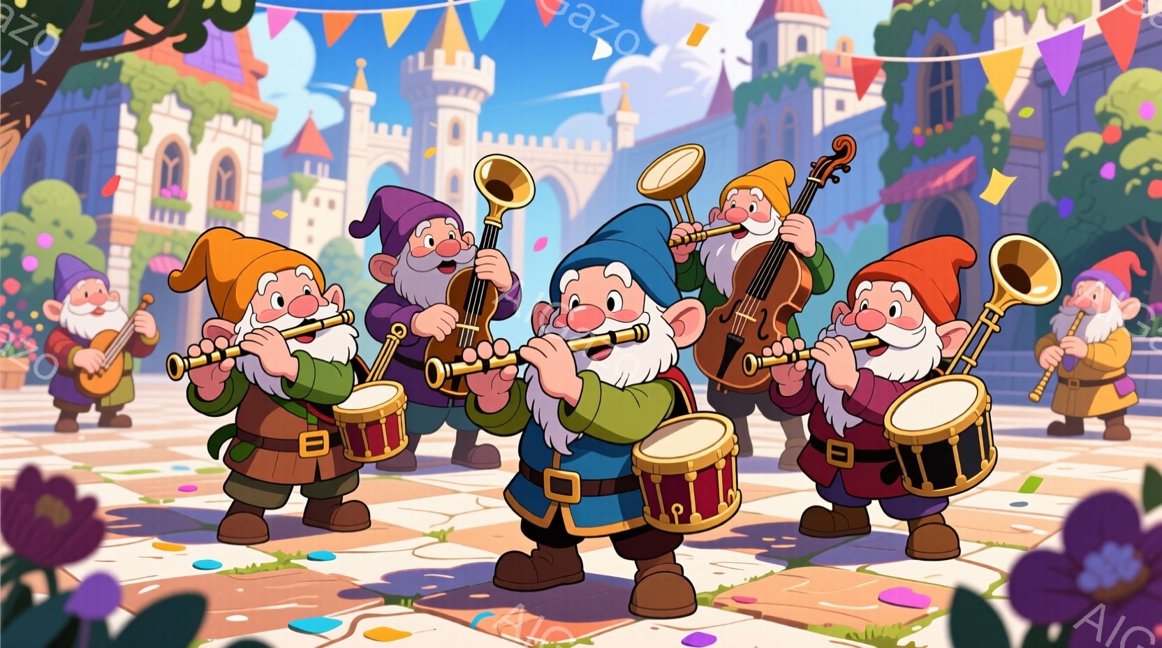 この無料AI生成画像「小さな妖精のような男たちが、それぞれドラム、トランペット、ベースを演奏しており、楽しそうな表情をしています。彼らは赤い帽子と緑色の服を着ており、腰には茶色のベルトが巻かれています。背景には、カラフルな建物や木々が見え、晴れた日の賑やかな市場のような雰囲気です。」は、2025年10月26日に作成されました。 サイズは 1664×928px の高解像度で、商用利用も可能なフリー素材として提供しています。
