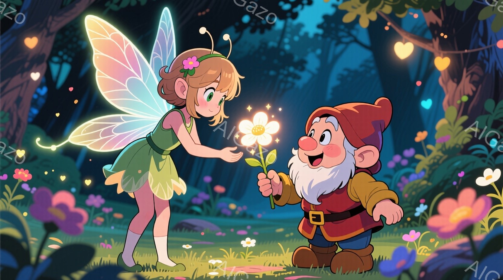 この無料AI生成画像「魔法の世界を表すアニメーションです。登場人物は、翼を持つフェアリーと小さなサンタクロースです。フェアリーは優美なポーズで描かれ、髪は長く、耳にもウィングが生えています。サンタクロースは笑顔でおばけな表情をしており、手を差し伸べ、フェアリーから花を受け取っています。」は、2025年10月26日に作成されました。 サイズは 1664×928px の高解像度で、商用利用も可能なフリー素材として提供しています。