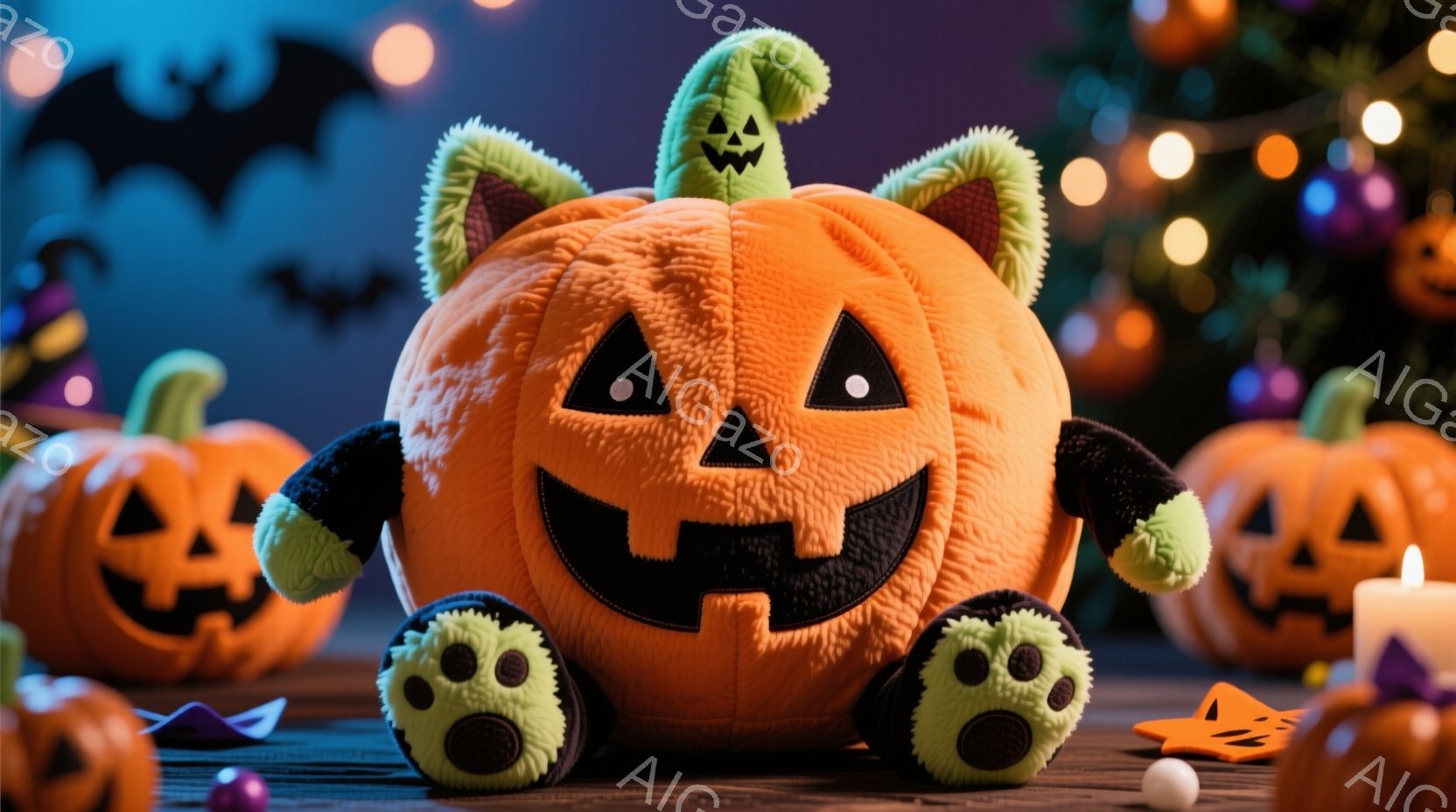 この無料AI生成画像「鮮やかなオレンジ色のパンプキンが複数、ハロウィーンの背景の中で可愛らしく並んでいます。一番大きなパンプキンは、緑色のつばと紫色のリボンが付いた黒い魔女帽子をかぶり、楽しげな表情をしています。背景には、カラフルな旗や光が飾られ、ハロウィーンの楽しい雰囲気が漂っています。」は、2025年10月26日に作成されました。 サイズは 1664×928px の高解像度で、商用利用も可能なフリー素材として提供しています。