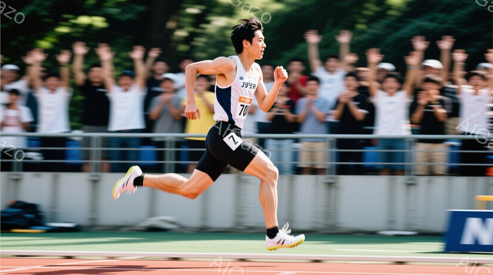 この無料AI生成画像「短距離走の選手が競技場で全速力で走っている様子が写っている。青と赤のユニフォームに「JRUI」と書かれており、背中にはゼッケン番号の「380」が光っている。背景には観客席が広がり、多くの人々が応援しているのが見え、晴天の下、活気に満ちた競技場の雰囲気が伝わってくる。」は、2025年10月22日に作成されました。 サイズは 1664×928px の高解像度で、商用利用も可能なフリー素材として提供しています。