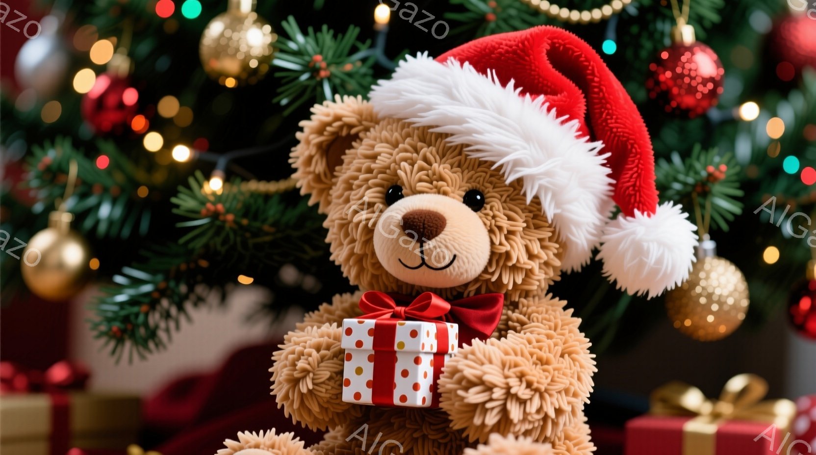 この無料AI生成画像「茶色いぬいぐるみがトナカイの衣装を着て、赤いソリを引いています。衣装には角、緑色のリボン、そして胸元に大きな白い円があります。背景にはクリスマスツリーやプレゼントがあり、雪景色の中で温かく、楽しい雰囲気が漂っています。」は、2025年10月26日に作成されました。 サイズは 1664×928px の高解像度で、商用利用も可能なフリー素材として提供しています。