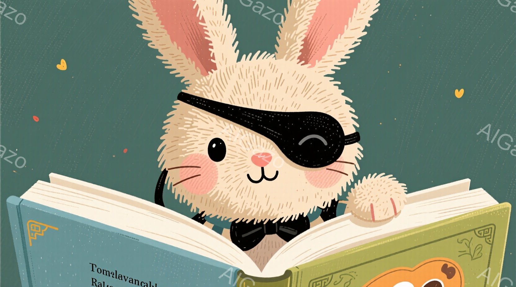 この無料AI生成画像「白い毛並みのウサギが、黒いアイパッチをつけ、開いた本を熱心に読んでいる姿が描かれています。ウサギはピンク色の頬を持ち、集中した表情で本に没頭しています。背景は淡い緑色で、植物のイラストが散りばめられ、全体的に柔らかく優しい雰囲気です。」は、2025年10月26日に作成されました。 サイズは 1664×928px の高解像度で、商用利用も可能なフリー素材として提供しています。
