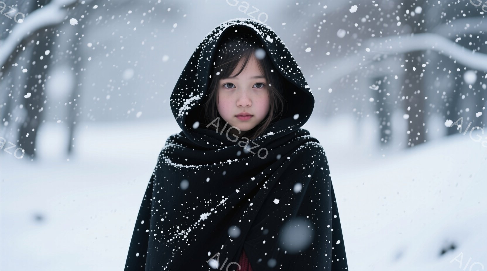 この無料AI生成画像「フード付きの黒いコートを着た若い女性が写っています。彼女はまっすぐ前を見つめ、やや憂いを含んだ表情をしています。背景は雪が降る冬の森で、白一色の中に女性のシルエットが際立っています。」は、2025年10月26日に作成されました。 サイズは 1664×928px の高解像度で、商用利用も可能なフリー素材として提供しています。