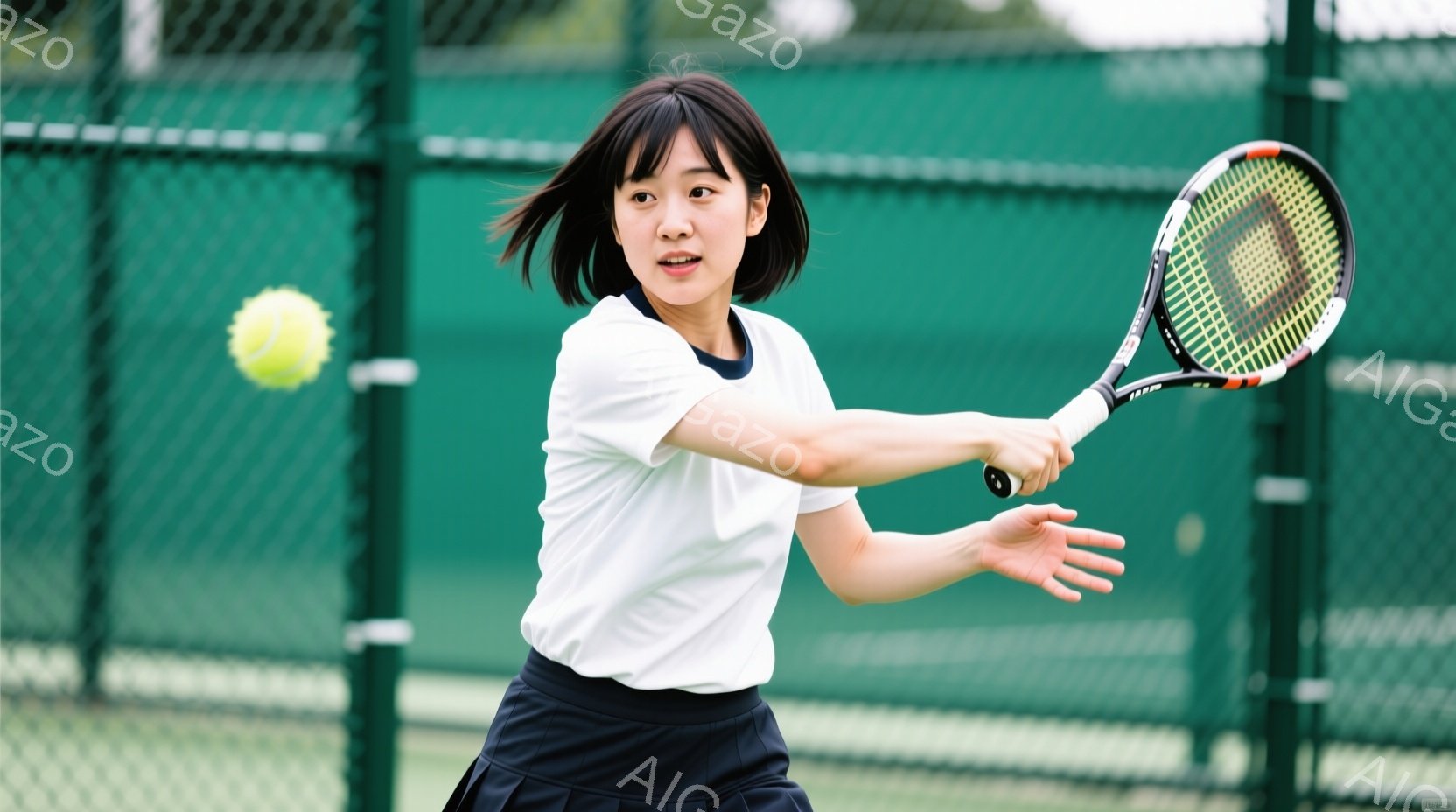この無料AI生成画像「若い女性テニス選手がフォアハンドストロークを打つ瞬間を捉えた写真です。白いタンクトップと紺色のショートパンツを着用し、髪は後ろでポニーテールに結んでいます。背景には緑のフェンスと木々が見え、晴れた日の屋外テニスコートで練習している様子が伝わってきます。」は、2025年10月22日に作成されました。 サイズは 1664×928px の高解像度で、商用利用も可能なフリー素材として提供しています。