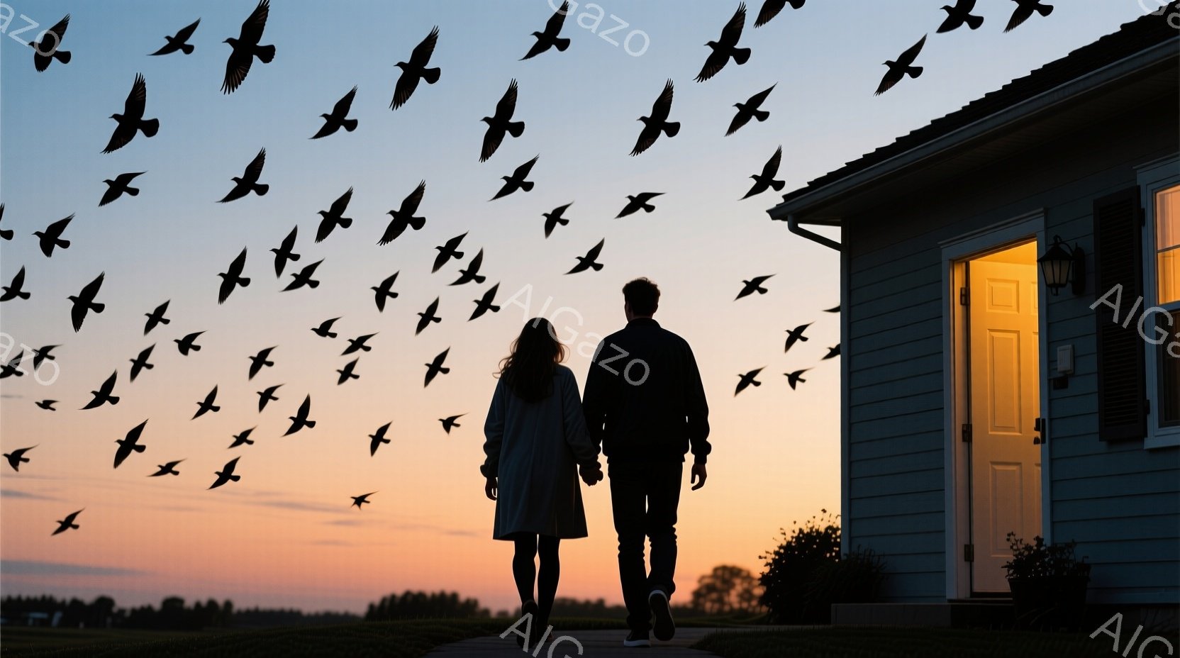 この無料AI生成画像「夕暮れ時の野原を、一対の男女が並んで歩いている。女性はロングスカート、男性はジーンズとジャケット姿で、後ろ姿だけが見える。空には、V字型になって飛ぶ鳥の大群が広がり、暖かく穏やかな雰囲気を醸し出している。」は、2025年10月26日に作成されました。 サイズは 1664×928px の高解像度で、商用利用も可能なフリー素材として提供しています。