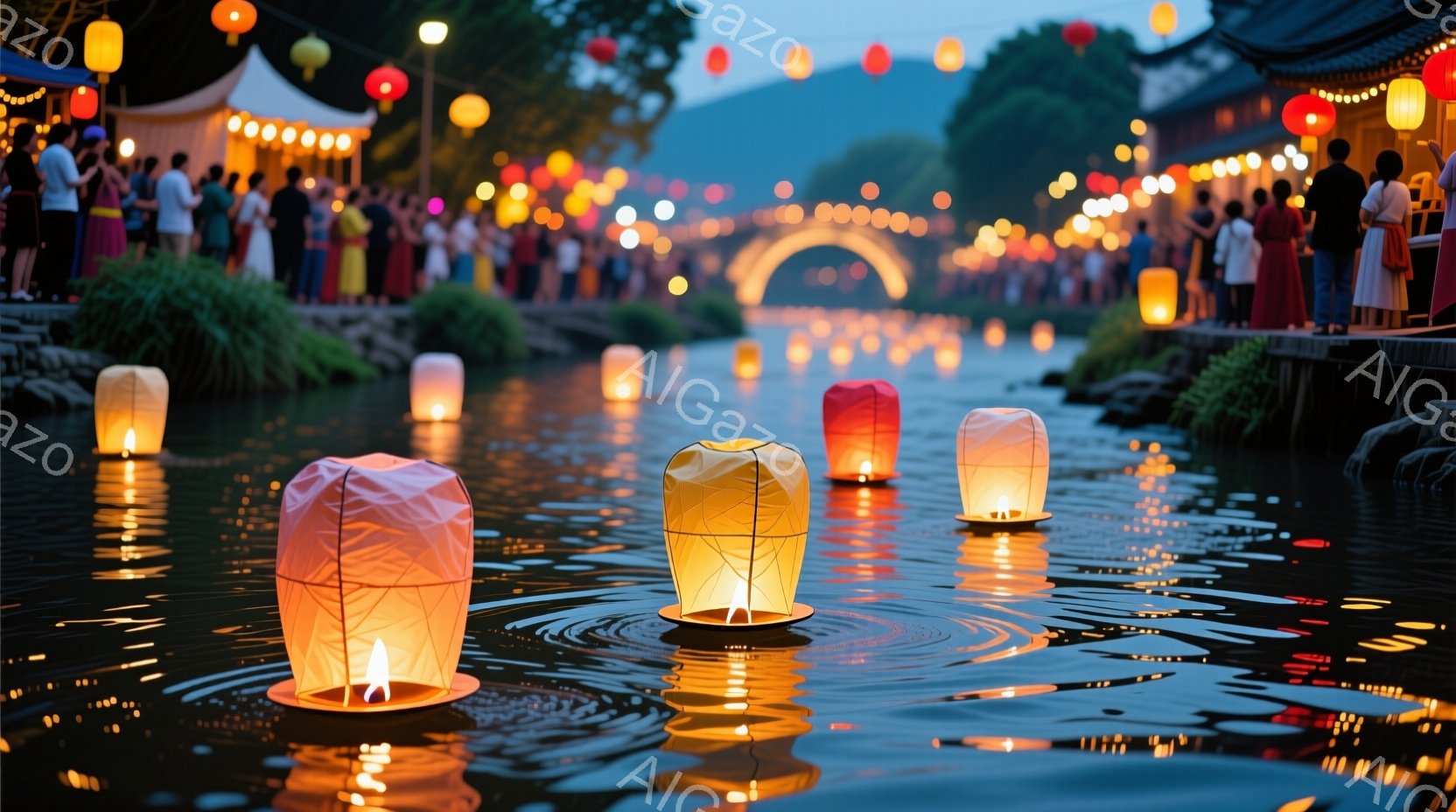 この無料AI生成画像「多くの人が水路に浮かぶ提灯を見守る夜の風景です。人々はカジュアルな服装で、笑顔を浮かべながら提灯が水面に反射する光景を楽しんでいます。背景には伝統的な建築様式の建物や緑豊かな木々が見え、穏やかで幻想的な雰囲気を醸し出しています。」は、2025年10月27日に作成されました。 サイズは 1664×928px の高解像度で、商用利用も可能なフリー素材として提供しています。