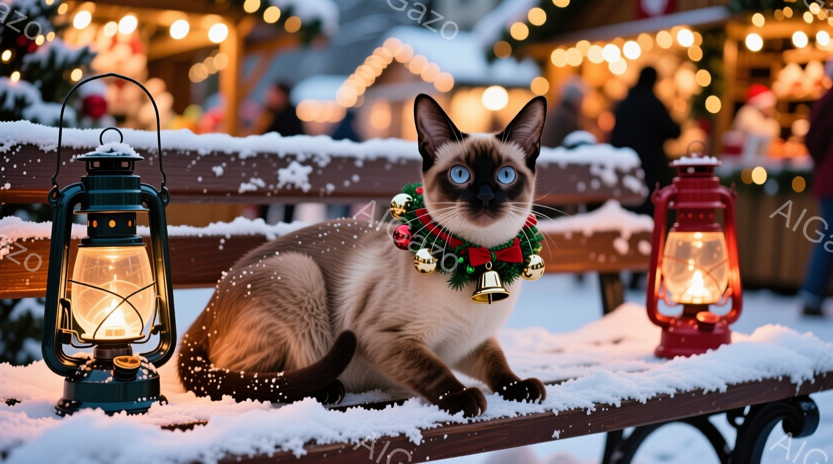 この無料AI生成画像「縞模様の猫が赤い布の上に丸まって横たわっており、緑色の背景にクリスマスオーナメントが飾られています。猫は前足を揃えて落ち着いた様子で、緑色の瞳がカメラを見つめています。全体的に暖かく、お祝いムードに満ちた雰囲気です。」は、2025年10月27日に作成されました。 サイズは 1664×928px の高解像度で、商用利用も可能なフリー素材として提供しています。