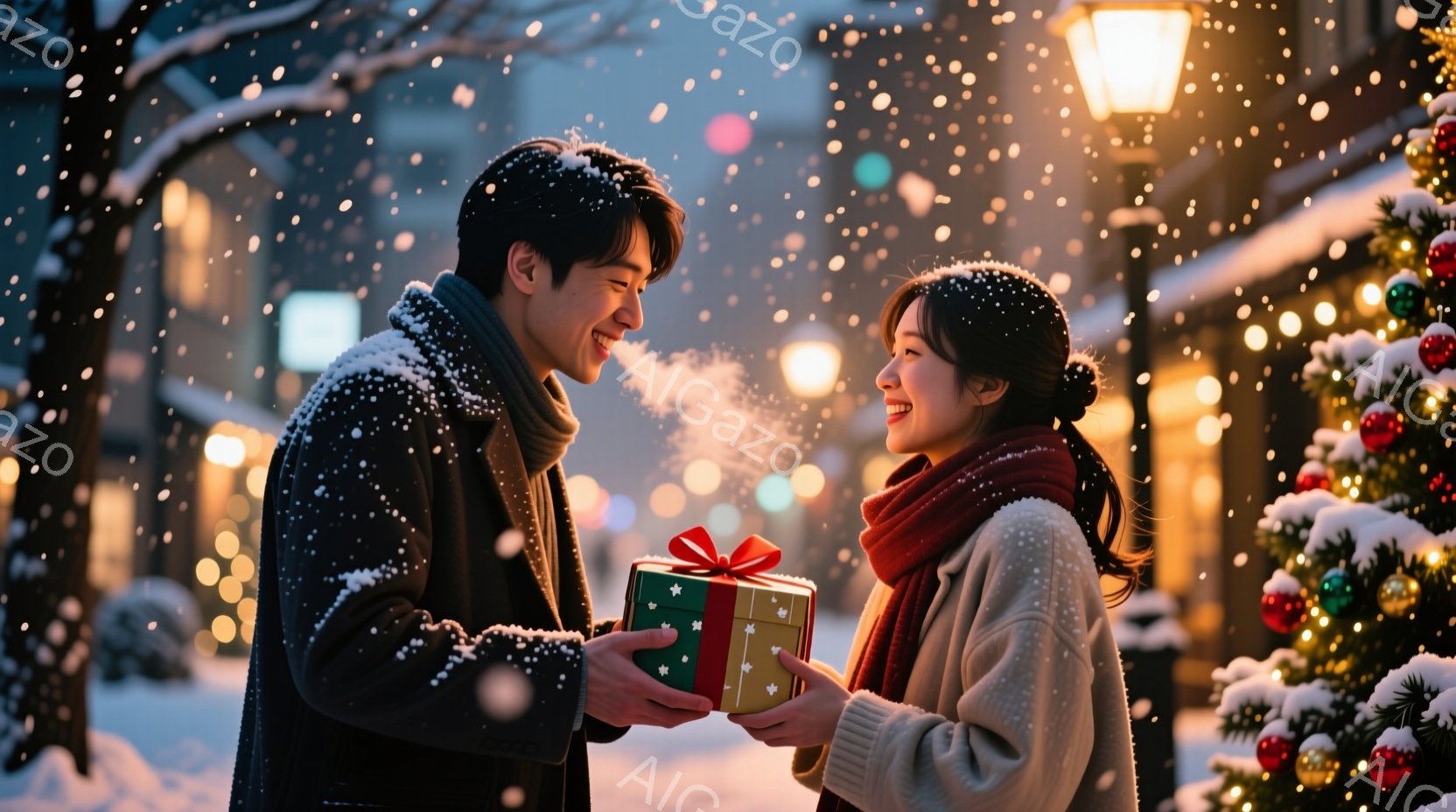 この無料AI生成画像「凍った湖のほとりで、若い男女が寄り添い、キスしようとしています。女性はベージュのコートにブーツを履き、男性は黒いコートにジーンズ姿で、暖かい冬の装いです。背景には、冬の森と、湖面を彩るイルミネーションで飾られた木々が並び、幻想的な雰囲気を醸し出しています。」は、2025年10月27日に作成されました。 サイズは 1664×928px の高解像度で、商用利用も可能なフリー素材として提供しています。