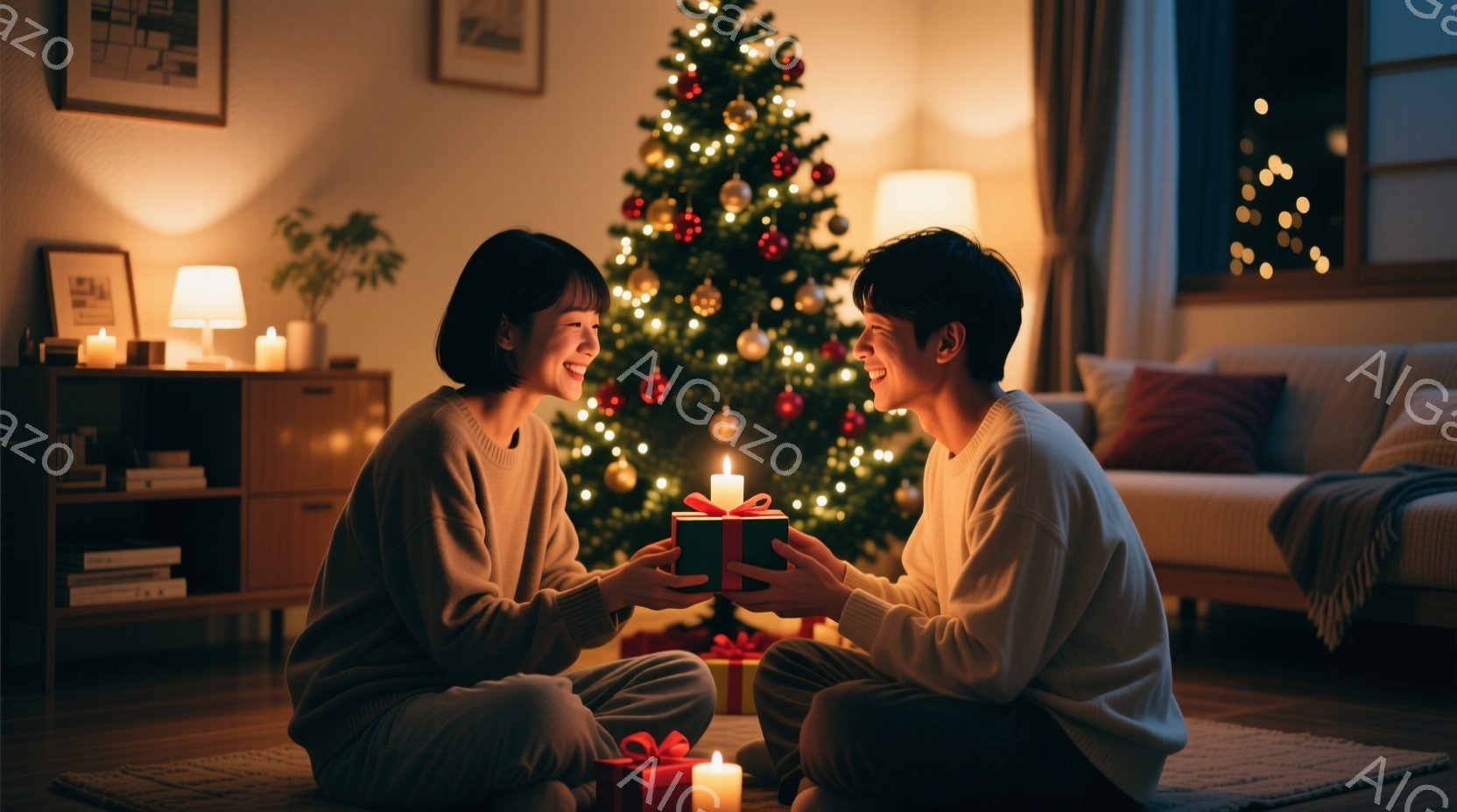 この無料AI生成画像「鮮やかな赤い着物を着た女性と、黒いスーツを着た男性が、夜の川沿いの遊歩道でプレゼントを交換している様子が描かれています。女性は笑顔でプレゼントを受け取り、男性は少し照れながらも嬉しそうにしています。背景には、川面に反射する美しいイルミネーションと、ぼやけた街の明かりが広がり、ロマンチックな雰囲気を醸し出しています。」は、2025年10月27日に作成されました。 サイズは 1664×928px の高解像度で、商用利用も可能なフリー素材として提供しています。