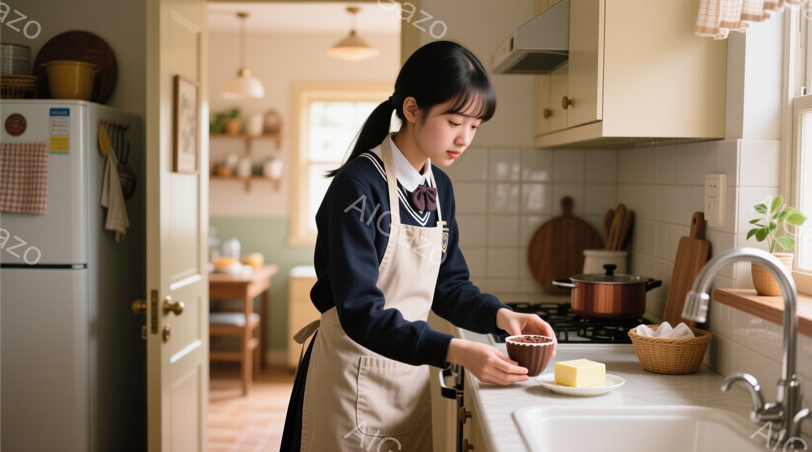 この無料AI生成画像「チョコレートを細かく刻む手が写っている、料理の様子が伺える画像です。背景には湯気を上げる鍋と、緑色のボウル、そして木製の作業台が見え、暖かく落ち着いた雰囲気が漂っています。手元に焦点が合っており、チョコレートの香ばしい甘さが感じられるようです。」は、2025年10月27日に作成されました。 サイズは 1664×928px の高解像度で、商用利用も可能なフリー素材として提供しています。