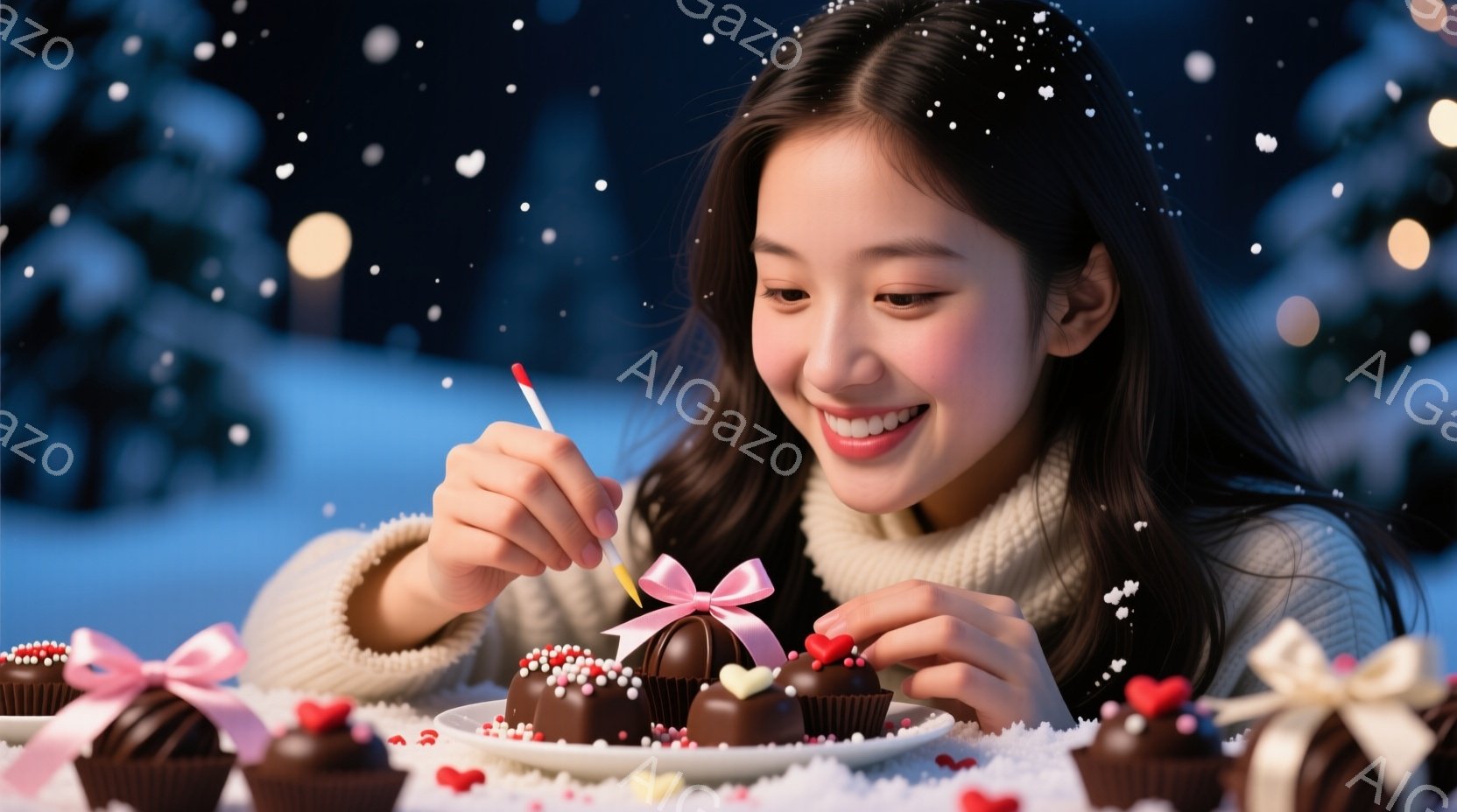 この無料AI生成画像「溶けたチョコレートが、空中で滴り落ちる様子が捉えられています。チョコレートは光沢があり、濃厚な色合いで、周囲にはほのかに湯気が立ち上っています。背景には砕いたチョコレートと、いくつかのチョコレートの塊がぼんやりと見え、高級感と食欲をそそる雰囲気を醸し出しています。」は、2025年10月27日に作成されました。 サイズは 1664×928px の高解像度で、商用利用も可能なフリー素材として提供しています。
