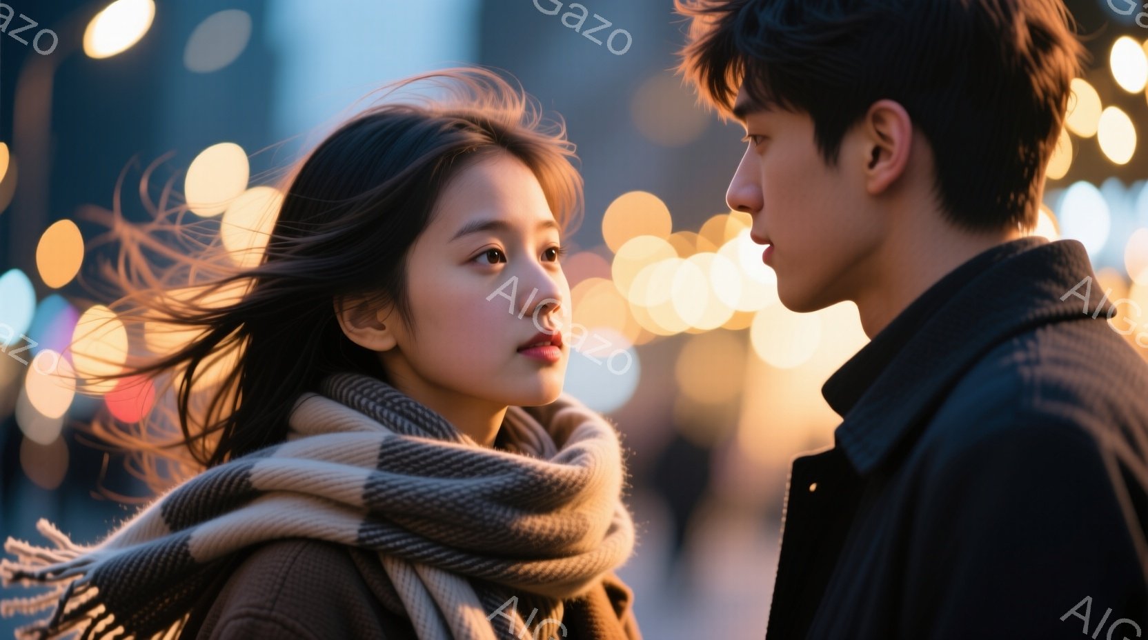 この無料AI生成画像「長い髪が風になびき、茶色のニットと厚手のオフホワイトのストールを巻いた女性が写っている。彼女は少し口を開け、何かを期待するような、あるいは少し悲しげな表情をしている。背景には、ぼやけた街の明かりが点在し、夜の寒さと、どこか切ない雰囲気が漂っている。」は、2025年10月27日に作成されました。 サイズは 1664×928px の高解像度で、商用利用も可能なフリー素材として提供しています。
