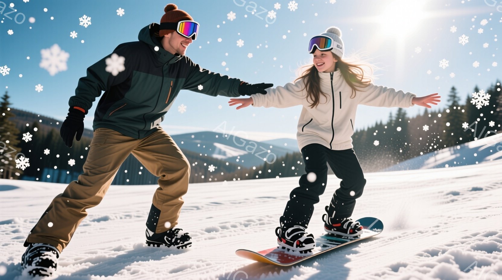 この無料AI生成画像「雪山をスノーボードで滑っている男女が写っています。男性は茶色のヘアスタイルで黒いゴーグルをつけ、オレンジ色のズボンに黒いジャケットを着ています。女性はロングヘアを頭にまとめ、ピンク色のジャケットと白いズボンを着て、楽しそうにスノーボードを楽しんでいる様子が伺えます。」は、2025年10月27日に作成されました。 サイズは 1664×928px の高解像度で、商用利用も可能なフリー素材として提供しています。