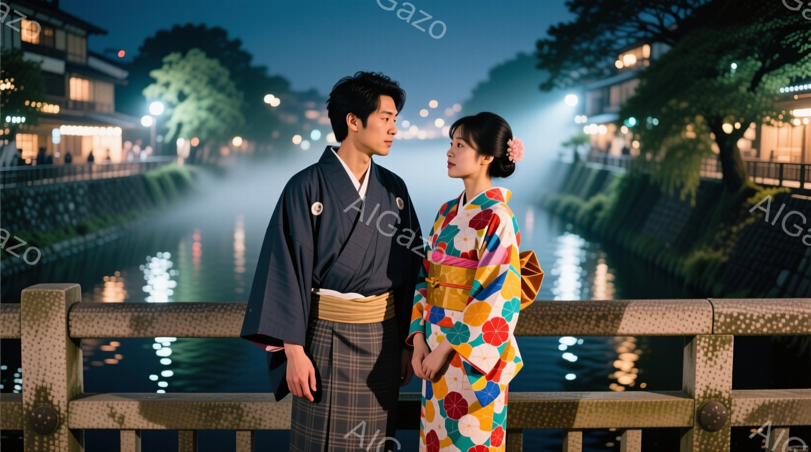 この無料AI生成画像「街灯の下で、スーツ姿の男性と女性が互いに顔を寄せ合っています。男性は黒いスーツにネクタイ、女性は白いシャツに黒いジャケットを着ており、髪はそれぞれ短く整えられています。背景には、雪が降り積もる夜の街並み、遠くに見える建物の光、そして雪で覆われた木々が広がっており、どこか物憂げで切ない雰囲気を醸し出しています。」は、2025年10月27日に作成されました。 サイズは 1664×928px の高解像度で、商用利用も可能なフリー素材として提供しています。