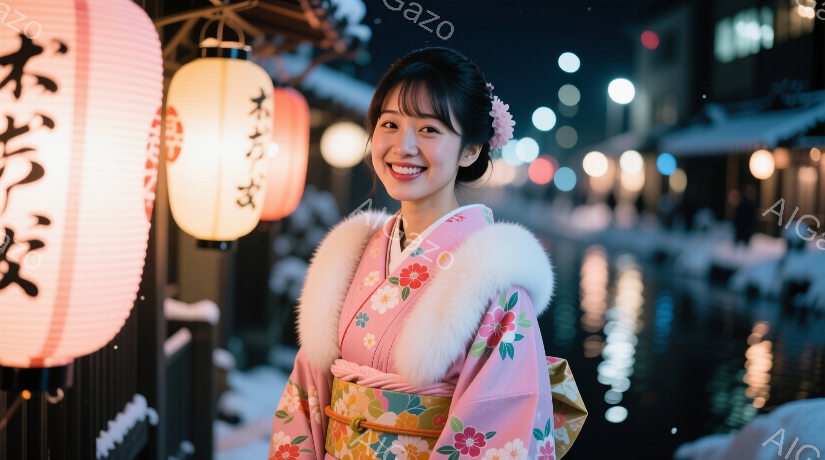 この無料AI生成画像「深い紫色の着物を着た若い女性が描かれています。彼女は毛皮の襟と帯が特徴的で、髪は高くとめて飾りをつけています。背景には夜の街並みがぼやけて見え、雪が舞っている様子から冬の夜の静かで美しい雰囲気が伝わってきます。」は、2025年10月27日に作成されました。 サイズは 1664×928px の高解像度で、商用利用も可能なフリー素材として提供しています。