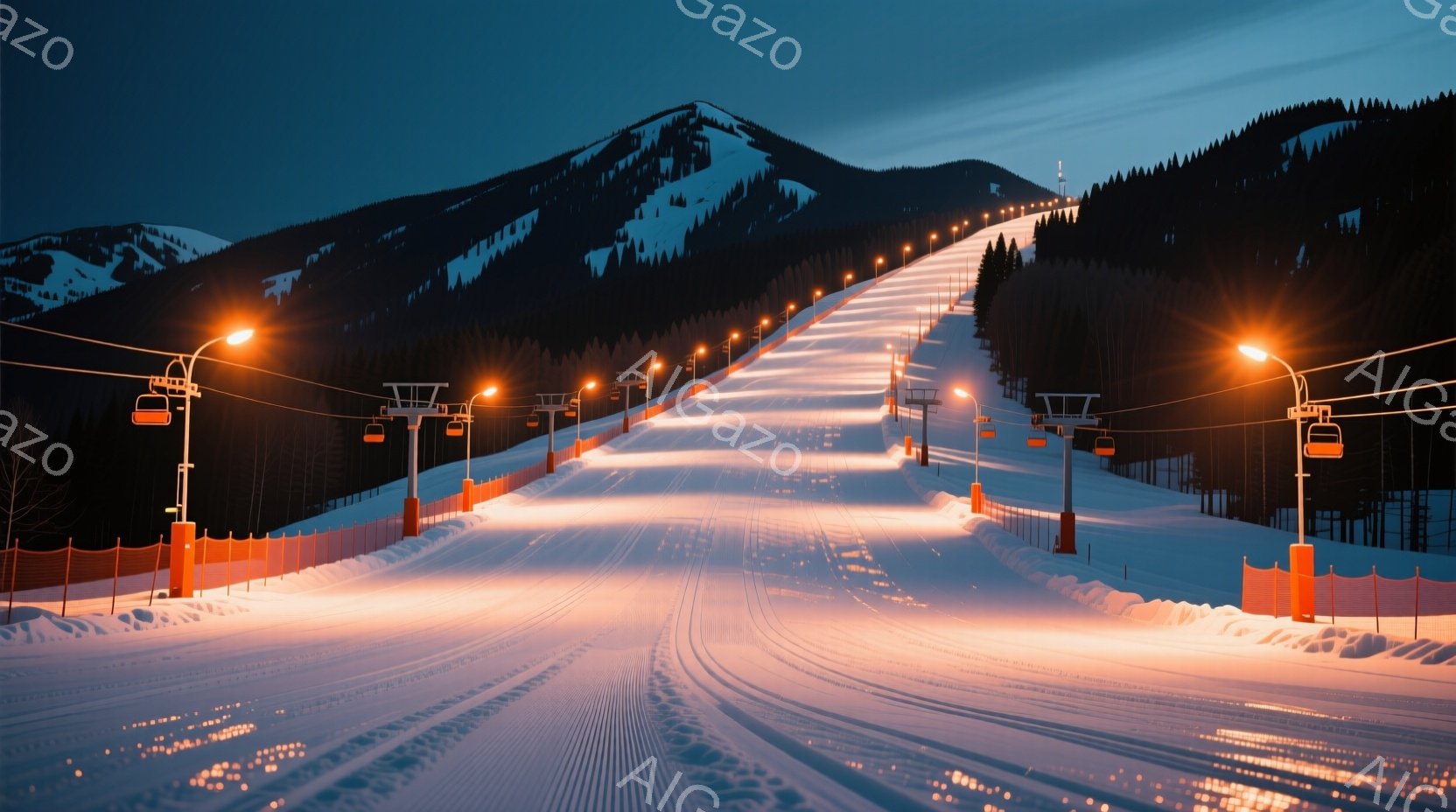 この無料AI生成画像「雪に覆われたスキーコースが、夕暮れ時のオレンジ色の光に照らされています。コースの両脇にはオレンジ色のネットフェンスが立ち並び、上部にはゴンドラリフトが運行しており、遠くには雪を頂いた山々が連なっています。全体的に静寂で穏やかな、冬の風景が広がっています。」は、2025年10月27日に作成されました。 サイズは 1664×928px の高解像度で、商用利用も可能なフリー素材として提供しています。