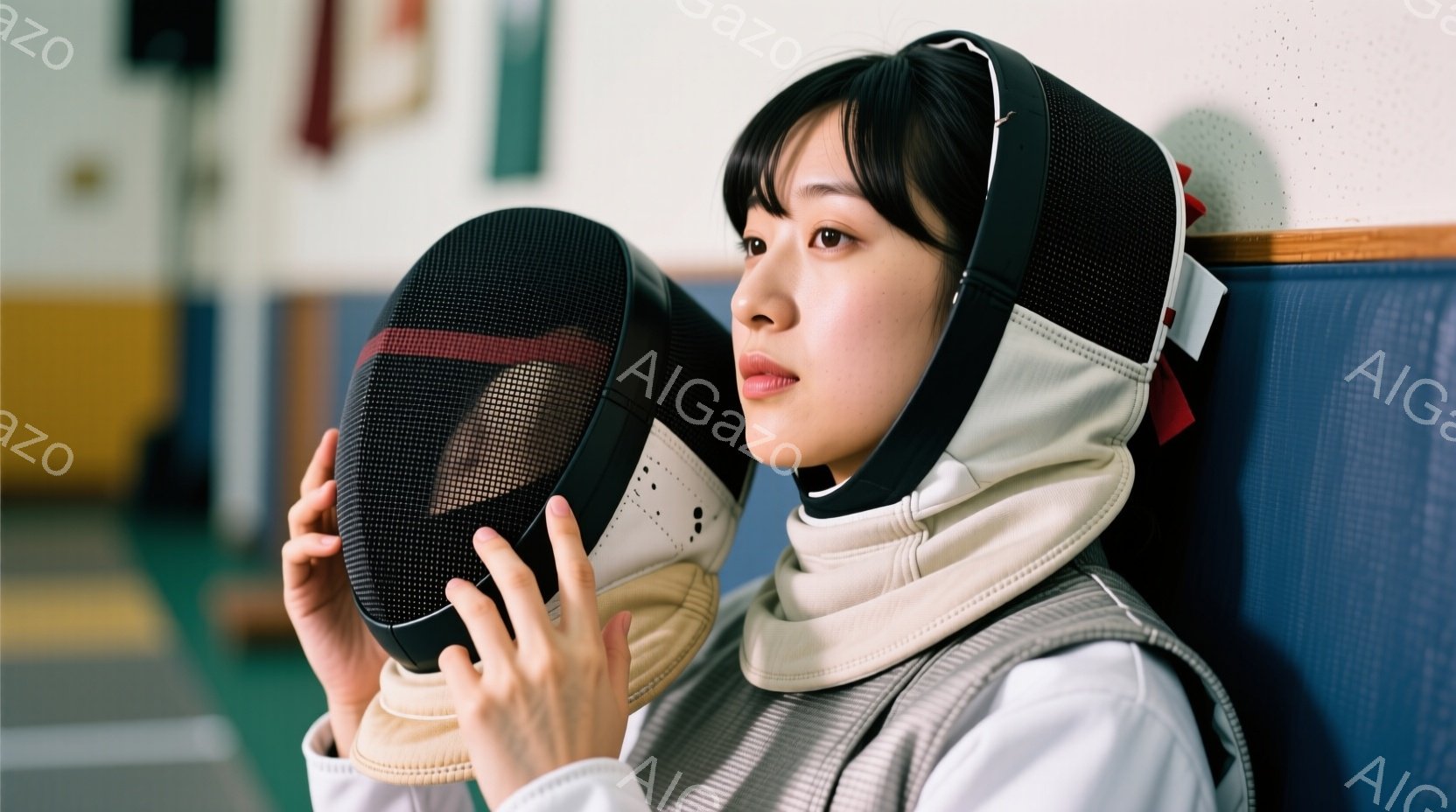 この無料AI生成画像「フェンシングの装備を身に着けた若い女性が写っている。彼女は白いフェンシングジャケットと黒いマスクを着用し、髪は後ろでまとめられている。背景は、青い壁と木製の構造物がある体育館のような場所で、集中した表情で何かを見つめている。」は、2025年10月22日に作成されました。 サイズは 1664×928px の高解像度で、商用利用も可能なフリー素材として提供しています。