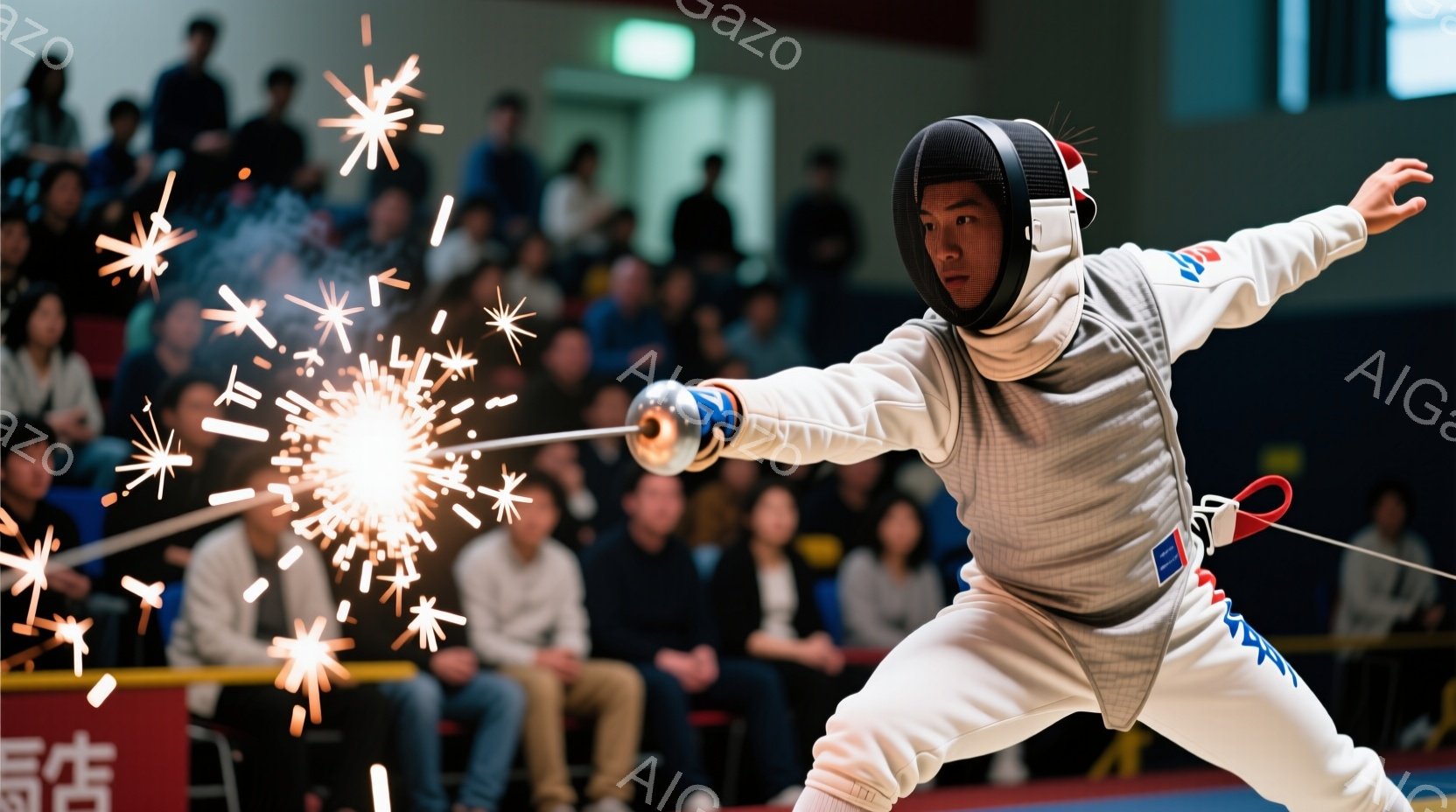 この無料AI生成画像「白いフェンシングスーツに身を包んだ男性が、剣を突き出し、競技中の様子が写っている。彼の表情は真剣で、身体は攻撃の勢いを感じさせるポーズを取っている。背景には観客席が見え、試合の臨場感と緊張感が伝わってくる。」は、2025年10月22日に作成されました。 サイズは 1664×928px の高解像度で、商用利用も可能なフリー素材として提供しています。