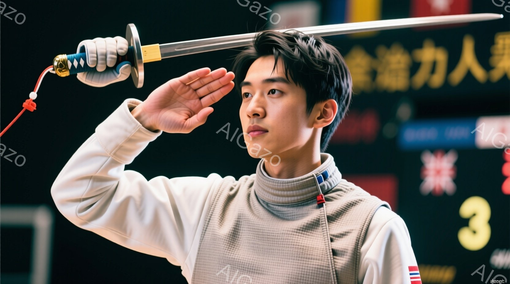 この無料AI生成画像「白いフェンシングスーツを着た若い男性が、右手を額に当てて敬礼の姿勢をとっています。黒髪を短く整え、顔には決意と集中が表れています。背景はぼやけていますが、室内のような空間で、フェンシングの練習場か競技場であると思われます。」は、2025年10月22日に作成されました。 サイズは 1664×928px の高解像度で、商用利用も可能なフリー素材として提供しています。