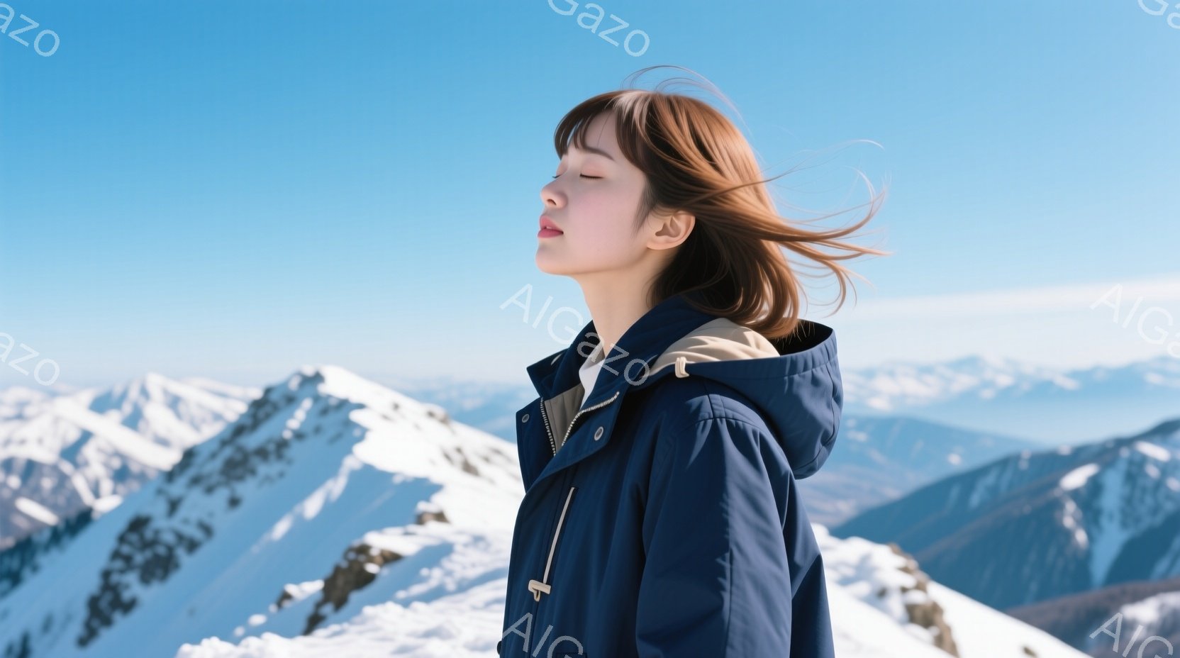 この無料AI生成画像「長い黒髪が風になびき、白いダウンジャケットとピンク色のマフラーを身に着けた女性が写っています。彼女は少し横を向き、穏やかで微笑ましい表情をしています。背景には雪をかぶった富士山がそびえ立ち、周囲には低い木々が見え、晴れた冬の日の穏やかな雰囲気を醸し出しています。」は、2025年10月27日に作成されました。 サイズは 1664×928px の高解像度で、商用利用も可能なフリー素材として提供しています。