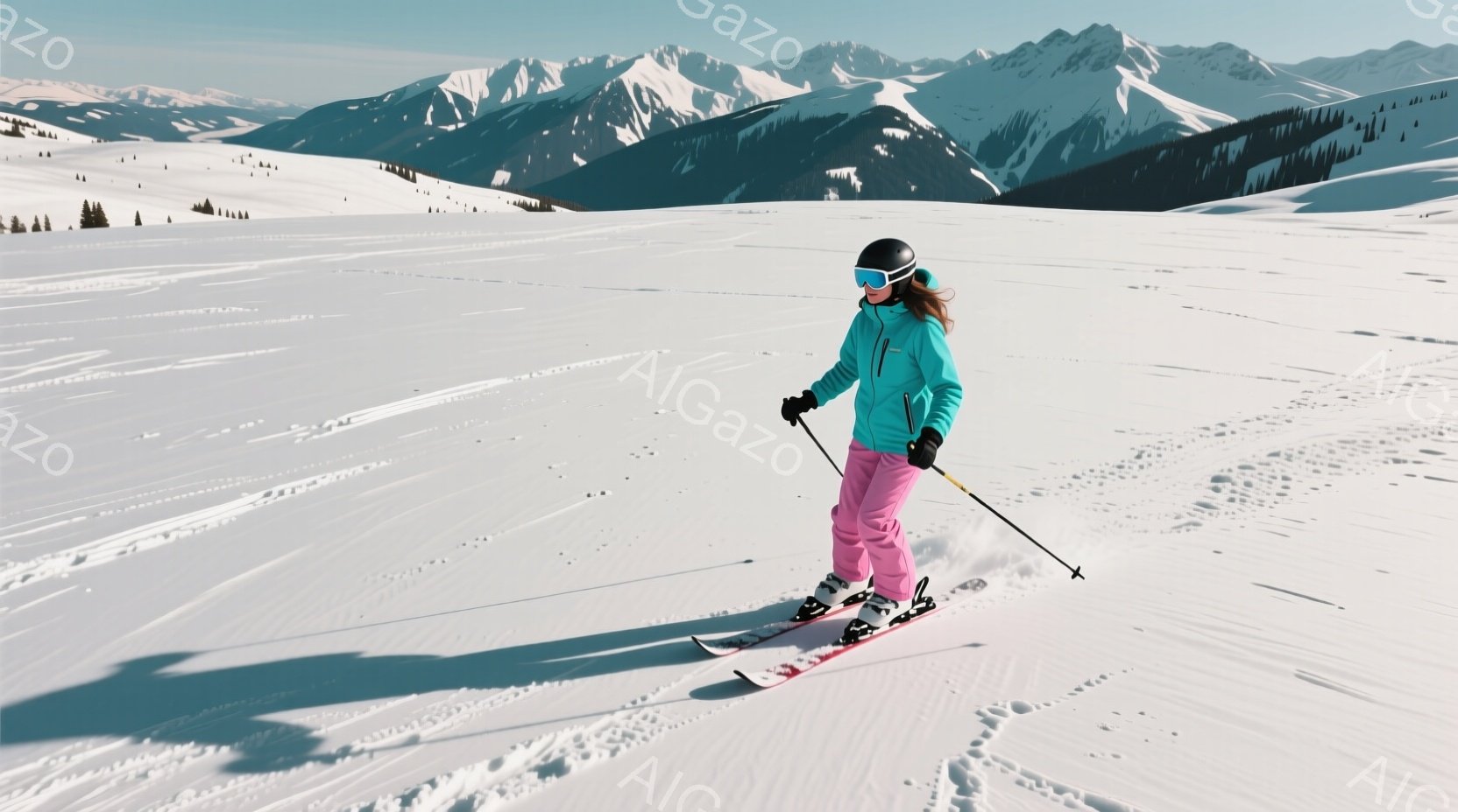この無料AI生成画像「雪山をスキーで滑走する女性が写っています。彼女はターコイズブルーのジャケットとピンクのスキーパンツを着用し、黒いヘルメットとゴーグルで頭部を保護しています。背景には雪をまとった山々が連なり、晴天の下、爽やかな冬の風景が広がっています。」は、2025年10月27日に作成されました。 サイズは 1664×928px の高解像度で、商用利用も可能なフリー素材として提供しています。