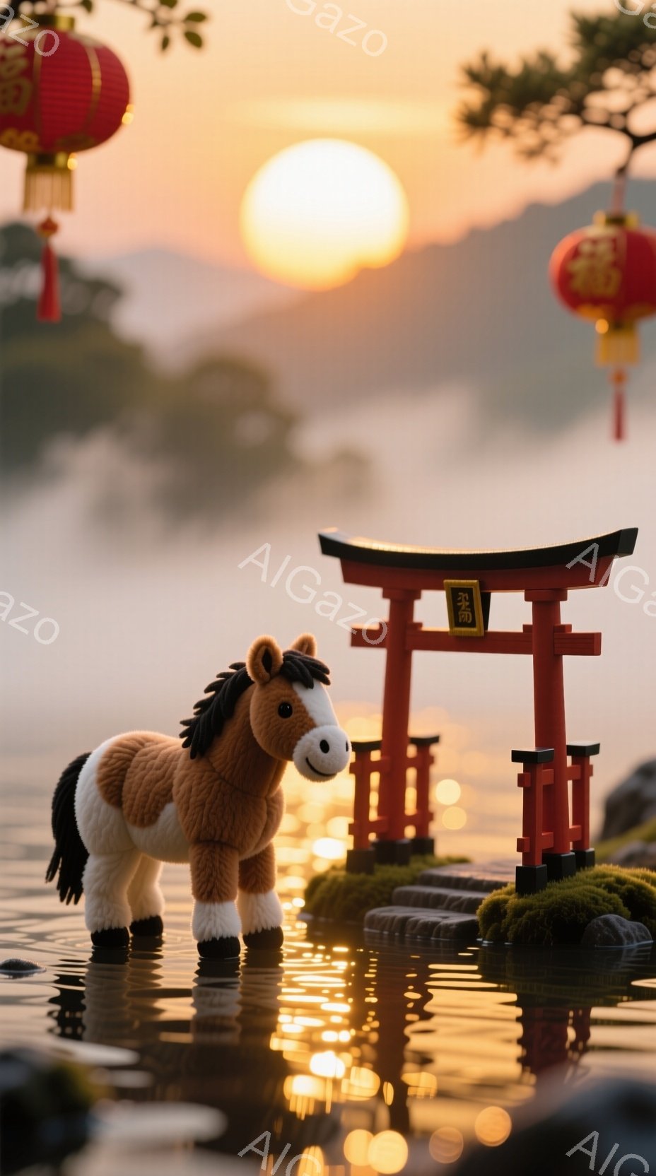 この無料AI生成画像「暖色系の茶色のテディベアの馬のおもちゃが、カメラの方をじっと見つめています。背景には、ぼやけた金色の光の玉と、金色のモールのような装飾があり、お祝いの雰囲気を醸し出しています。毛並みが柔らかく、愛らしい表情が特徴で、全体的に温かく、優しい印象を与える画像です。」は、2025年10月30日に作成されました。 サイズは 928×1664px の高解像度で、商用利用も可能なフリー素材として提供しています。