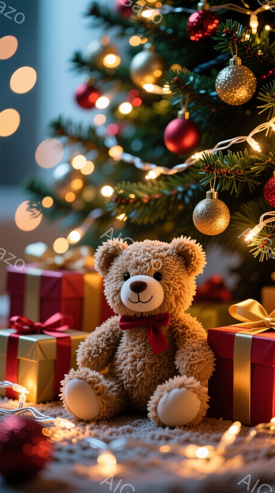 この無料AI生成画像「柔らかい毛並みの犬のぬいぐるみとクマのぬいぐるみが、水色のリボンで結ばれたプレゼントを正面に向けて持っています。背景には、飾り付けられたクリスマスツリーと、様々なプレゼントの箱が見え、暖かく優しい雰囲気です。部屋全体が柔らかい光に包まれ、クリスマスの温かさと幸福感が伝わってきます。」は、2025年10月30日に作成されました。 サイズは 928×1664px の高解像度で、商用利用も可能なフリー素材として提供しています。
