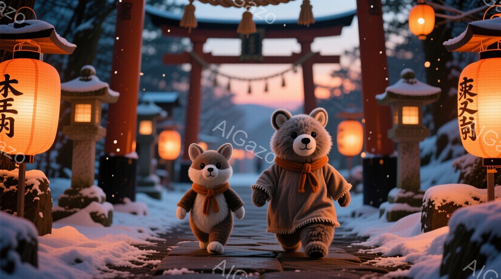 この無料AI生成画像「日本の神社の前に並んだ5体の可愛らしいぬいぐるみがあります。各ぬいぐるみは異なる髪の色と服装で、それぞれお祝いの飾りを身につけており、顔は皆笑顔で、手を前に伸ばして楽しそうな雰囲気です。背景には、鮮やかな朱色の鳥居と緑豊かな木々が見え、晴天の下、お祭りのような賑やかな空気が漂っています。」は、2025年11月02日に作成されました。 サイズは 1664×928px の高解像度で、商用利用も可能なフリー素材として提供しています。