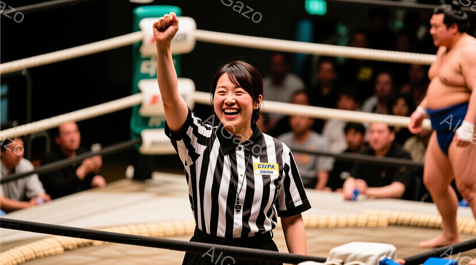 この無料AI生成画像「競技者は土俵上で激しい相撲の最中です。一人は伝統的な柄の着物と髷(まげ)で、もう一人は締め込みを着て、空中での激しい衝突を捉えています。背景には観客席が見え、競技の熱気を高めています。」は、2025年10月22日に作成されました。 サイズは 1664×928px の高解像度で、商用利用も可能なフリー素材として提供しています。