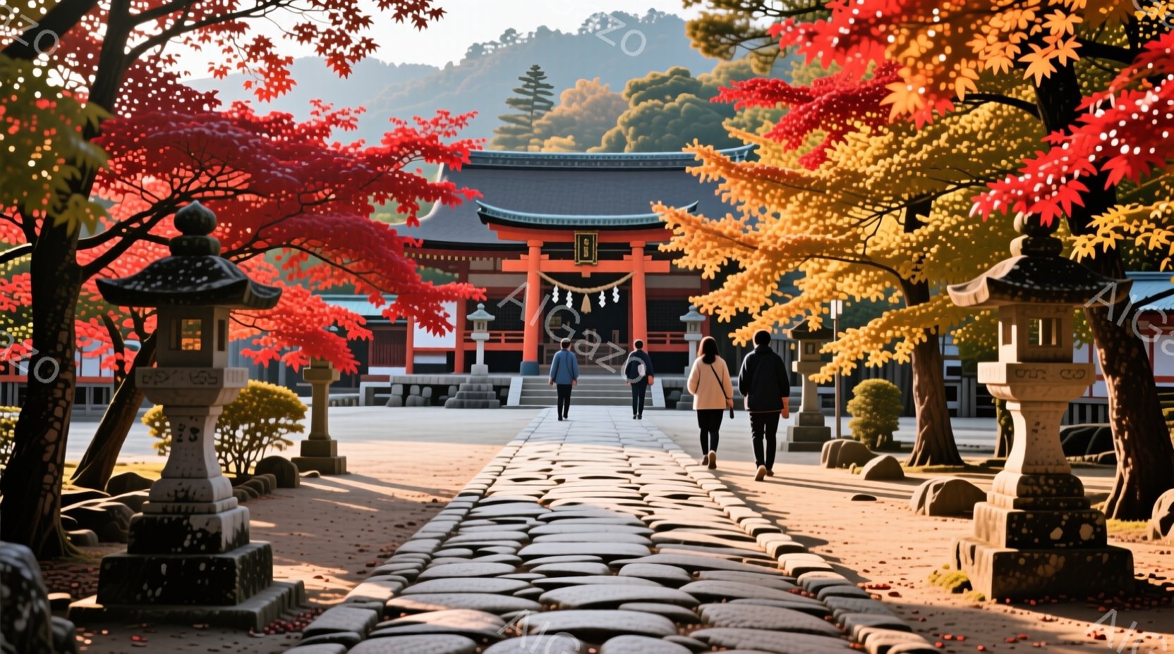 この無料AI生成画像「鹿が石畳の道に立っており、背景には赤い鳥居と穏やかな湖が見える。周囲は紅葉した木々で彩られ、秋の穏やかな雰囲気が漂っている。石灯籠が道の脇に立ち、歴史的な場所であることを示唆している。」は、2025年11月10日に作成されました。 サイズは 1664×928px の高解像度で、商用利用も可能なフリー素材として提供しています。