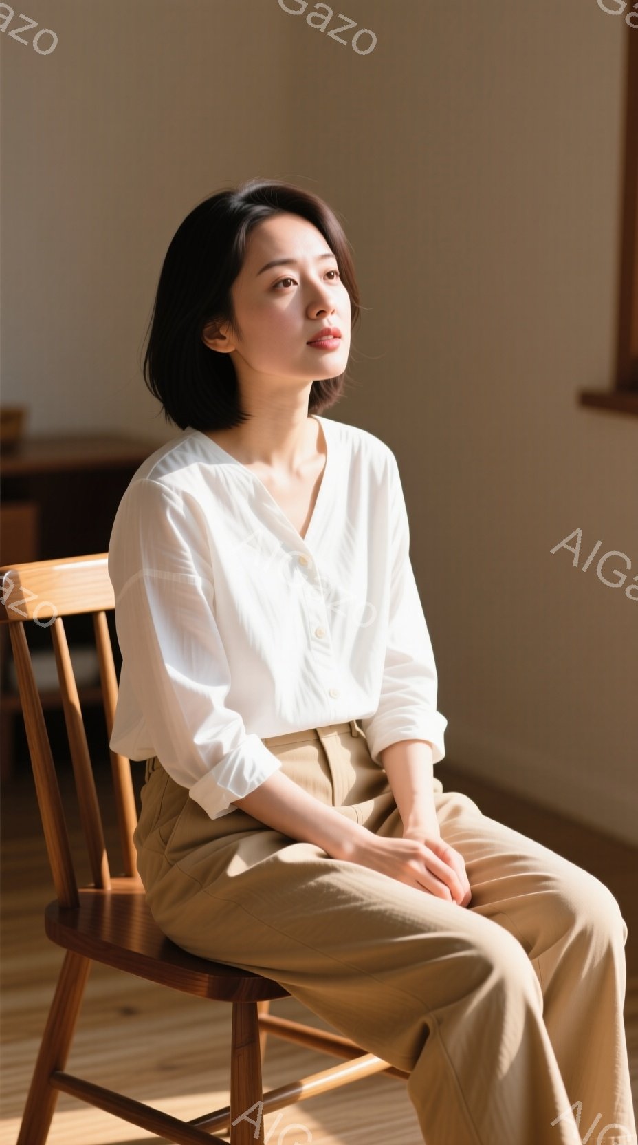 この無料AI生成画像「浅いベージュ色のソファに寄りかかり、女性がリラックスした表情で微笑んでいます。ダークブラウンのショートヘアで、薄いベージュ色のゆったりとしたシャツを着ています。背景には緑の植物が見え、室内が暖かく穏やかな雰囲気を作り出しています。」は、2025年11月13日に作成されました。 サイズは 928×1664px の高解像度で、商用利用も可能なフリー素材として提供しています。