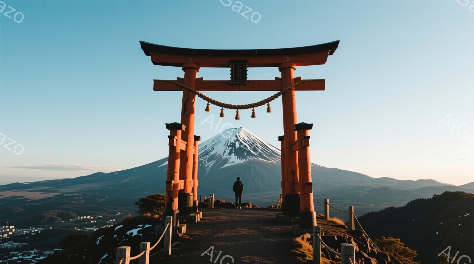 この無料AI生成画像「険しい山頂に朱色の鳥居が堂々と建っており、そこから続く石段が遠くの山々へと続いています。背景には霞んだ青い山々が連なり、空は澄み切った青色で、全体的に静寂で神聖な雰囲気が漂っています。石段の上には小さな人物が見え、鳥居をくぐって山頂を目指している様子が伺えます。」は、2025年10月22日に作成されました。 サイズは 1664×928px の高解像度で、商用利用も可能なフリー素材として提供しています。