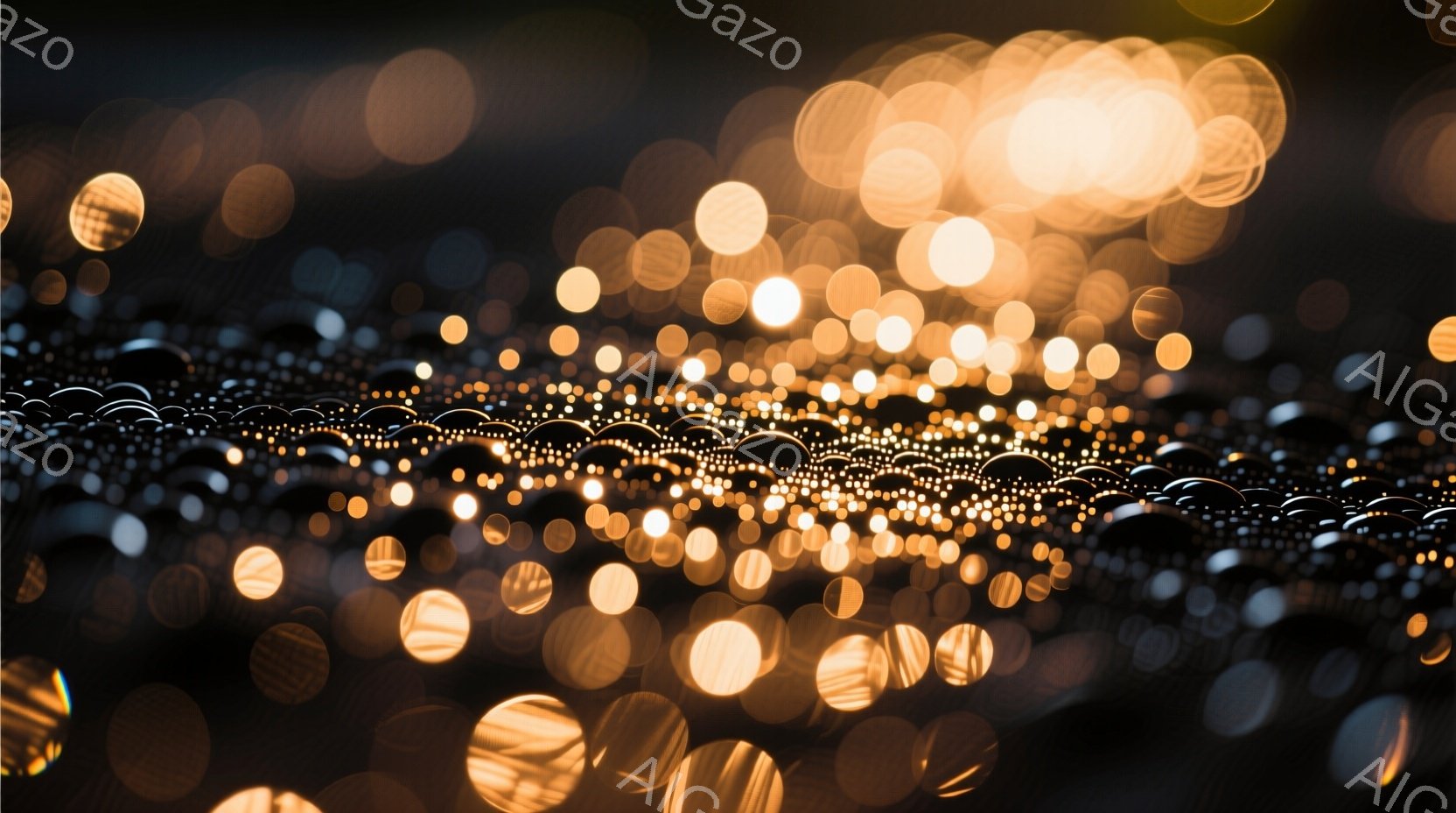 画像全体は、ぼやけた光の球体が無数に広がる様子が描かれています。オレンジ色と黄色の光が中心に集まり、まるで夜空の星のように輝き、光の粒は背景全体に広がって幻想的な雰囲気を醸し出しています。鮮明な人物や具体的な背景は確認できませんが、光の玉が織りなす抽象的な表現が印象的です。