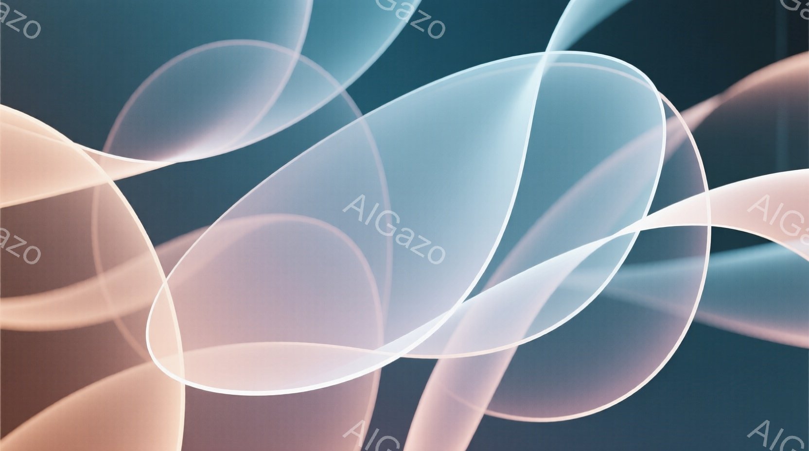抽象的な背景が印象的な画像です。柔らかいピンク、青、白の曲線が絡み合い、流れるような動きと軽やかさを表現しています。背景はグラデーションになっており、全体的に穏やかで夢幻的な雰囲気を醸し出しています。
