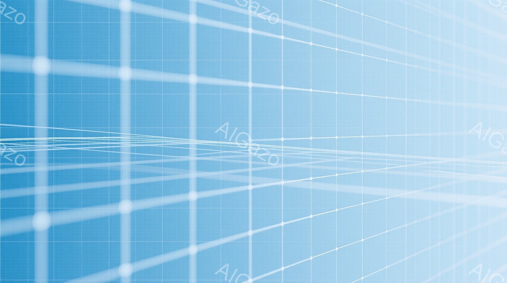 この画像は、明るい青色の背景に、白い小さな正方形が格子状に並べられています。正方形同士を結ぶように、うねった白い線が描かれ、まるでネットワークや接続を視覚化したような印象を与えます。全体的に、シンプルで未来的な、クリーンな雰囲気です。