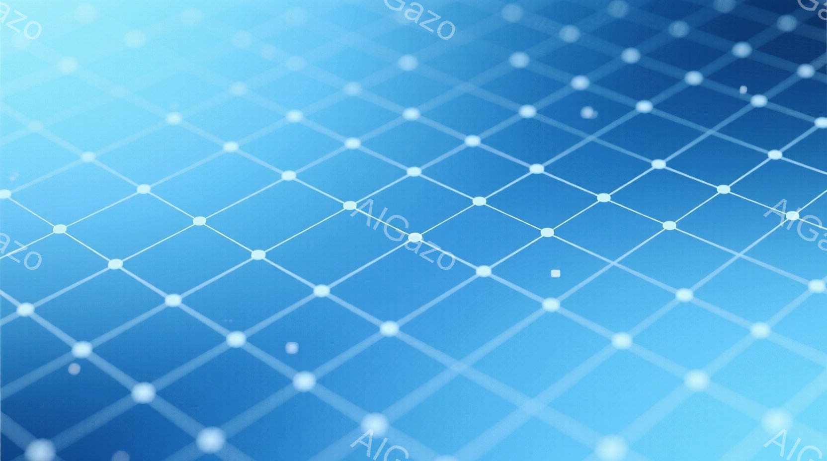 この画像は、青を基調としたグリッド状の抽象的な背景です。明るい水色の正方形が不規則に配置され、薄い青色の線で結ばれており、未来的なデジタル空間を想起させます。全体的にクールで落ち着いた雰囲気であり、テクノロジーやネットワークのイメージを喚起します。